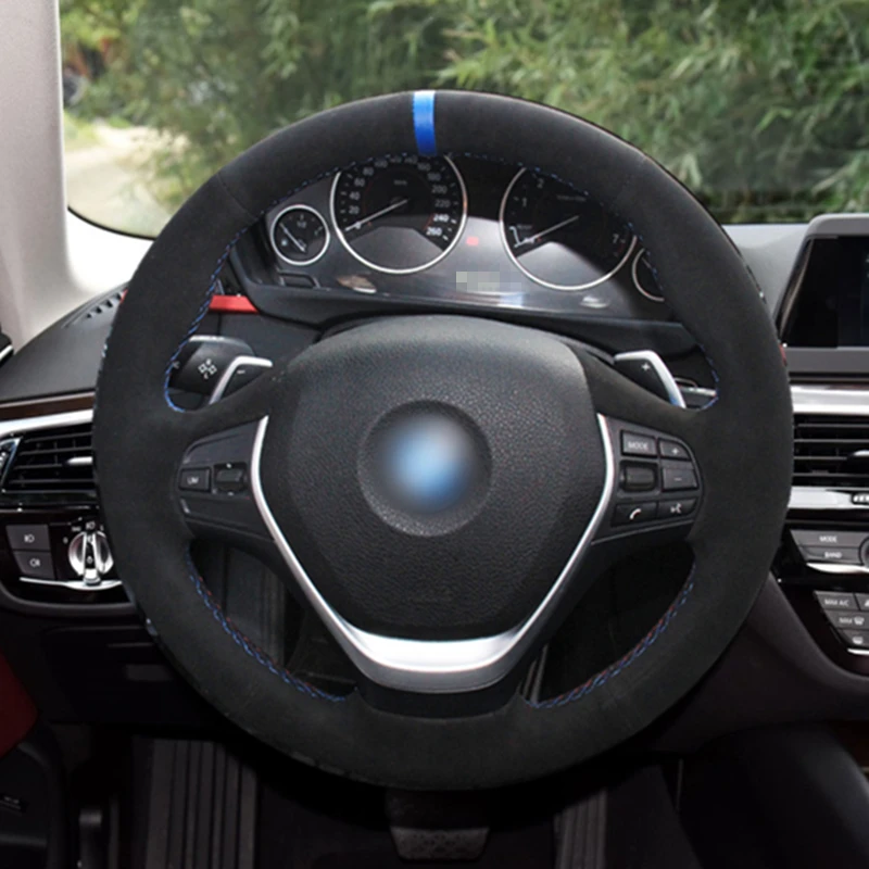 Черная замшевая кожа Чехол рулевого колеса автомобиля для BMW M Spo...