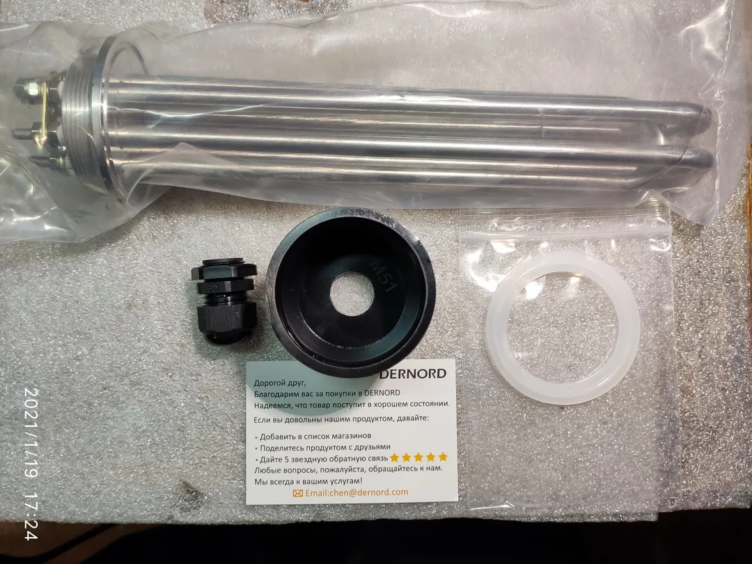 Посылку получил, доставили ускоренной доставкой от Али. Сам товар пришел целый без физ.повреждений. Проверил сопротивление нагревателей все ровно на всех трех ,коротких замыканий не корпус нет. Товар пришел в полном комплекте. Есть крышка, сальник, перемычки с гайками , шайбами и резиновый уплотнитель. Заказывал не для себя. Знакомые заказали для изготовление спиртного.