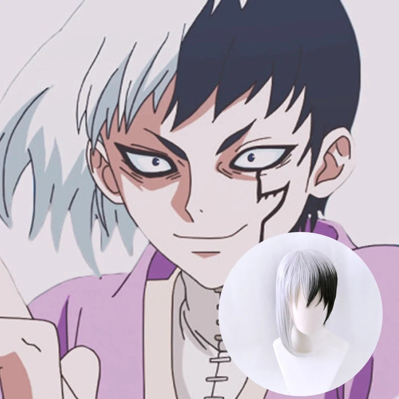 Аниме Dr.Stone Косплей асагири Gen черный белый костюм парик Термостойкое волокно синтетические волосы + парик Кепка