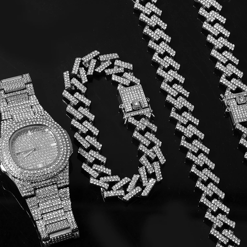 Часы мужские в стиле хип-хоп, мужские ожерелья с цепочкой и браслет...