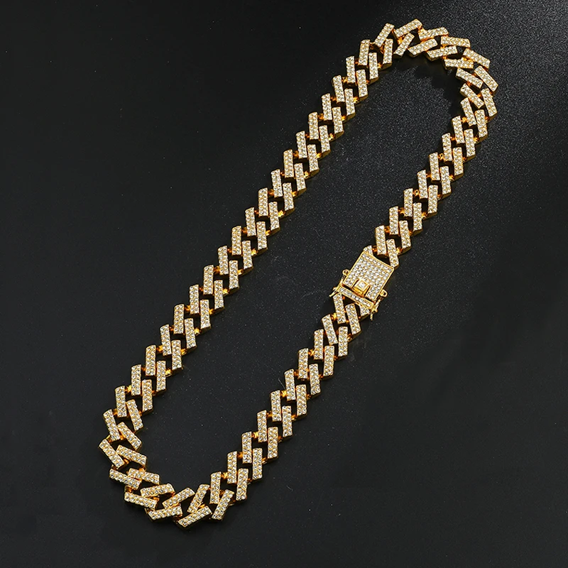 Мужские цепочки в стиле хип-хоп, сверкающие цепочки с кристаллами, 15 мм, стразы, Miami Zircon, ювелирные изделия для мужчин