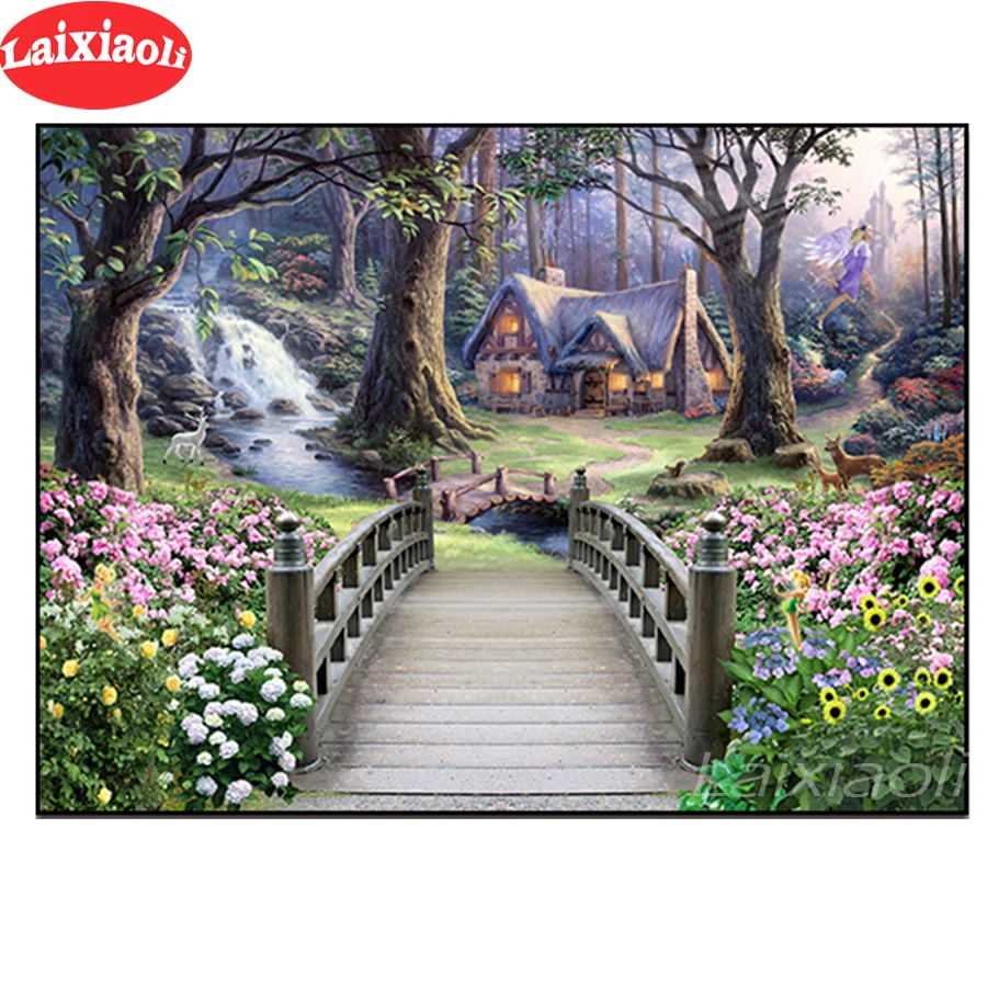 Алмазная вышивка "сделай сам", пейзаж, садовый домик, алмазная живопись, вышивка крестиком, комплекты, украшение для дома Алмазная вышивка