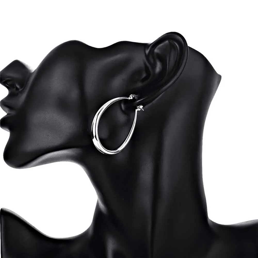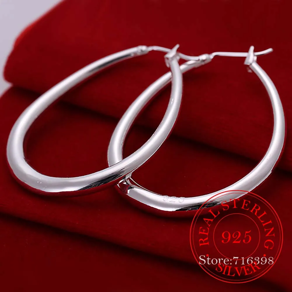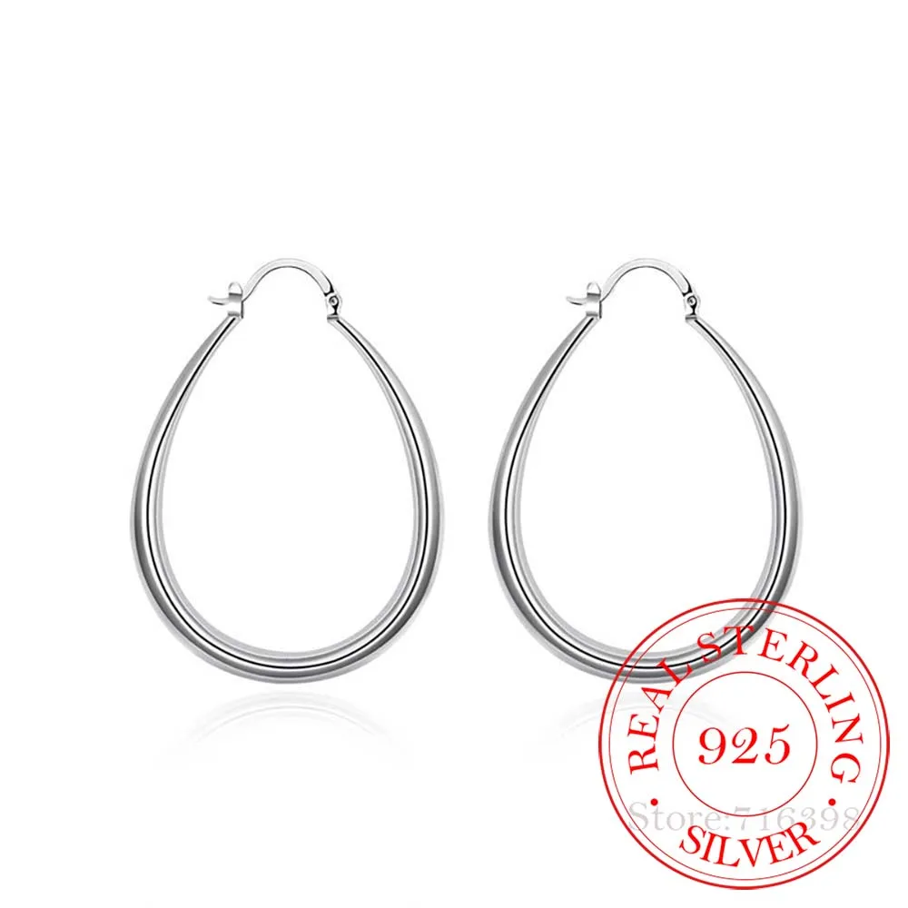 Personality Hyperbole 100% 925 пробы серебряные Простые Гладкие большие серьги-кольца для женщин из стерлингового серебра-ювелирные изделия