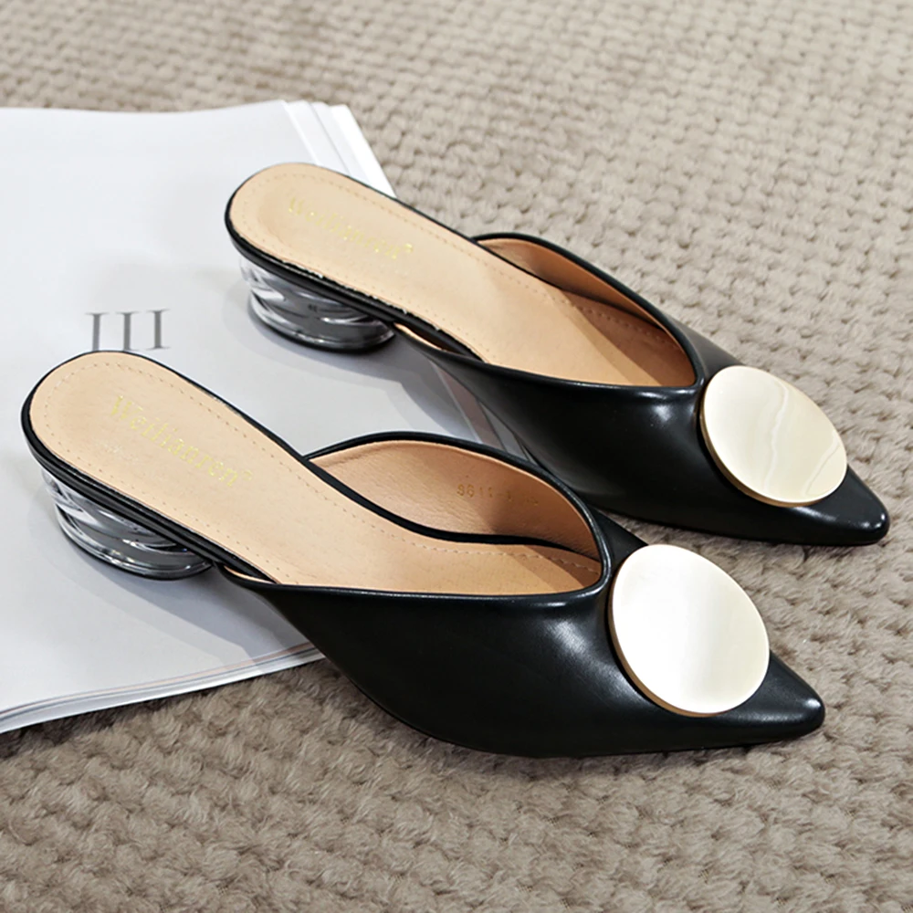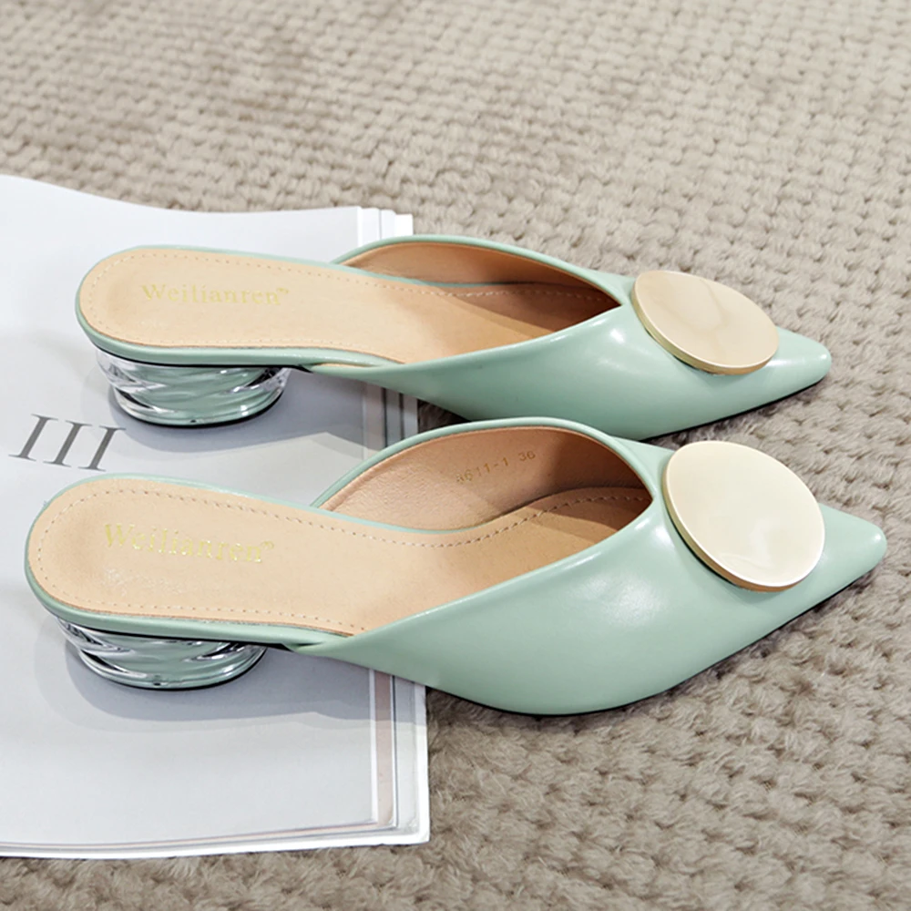 Мюли женские с заостренным носком, сланцы, пляжные шлепанцы, обувь с открытым носком, лето 2021