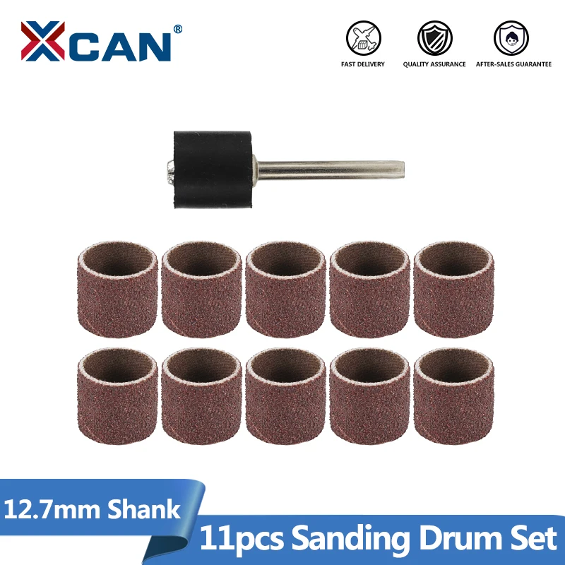 Набор шлифовальных барабанов XCAN 12,7 мм, 11 шт., шлифовальные ленты 100 грит для Dremel, вращающиеся аксессуары, абразивные инструменты