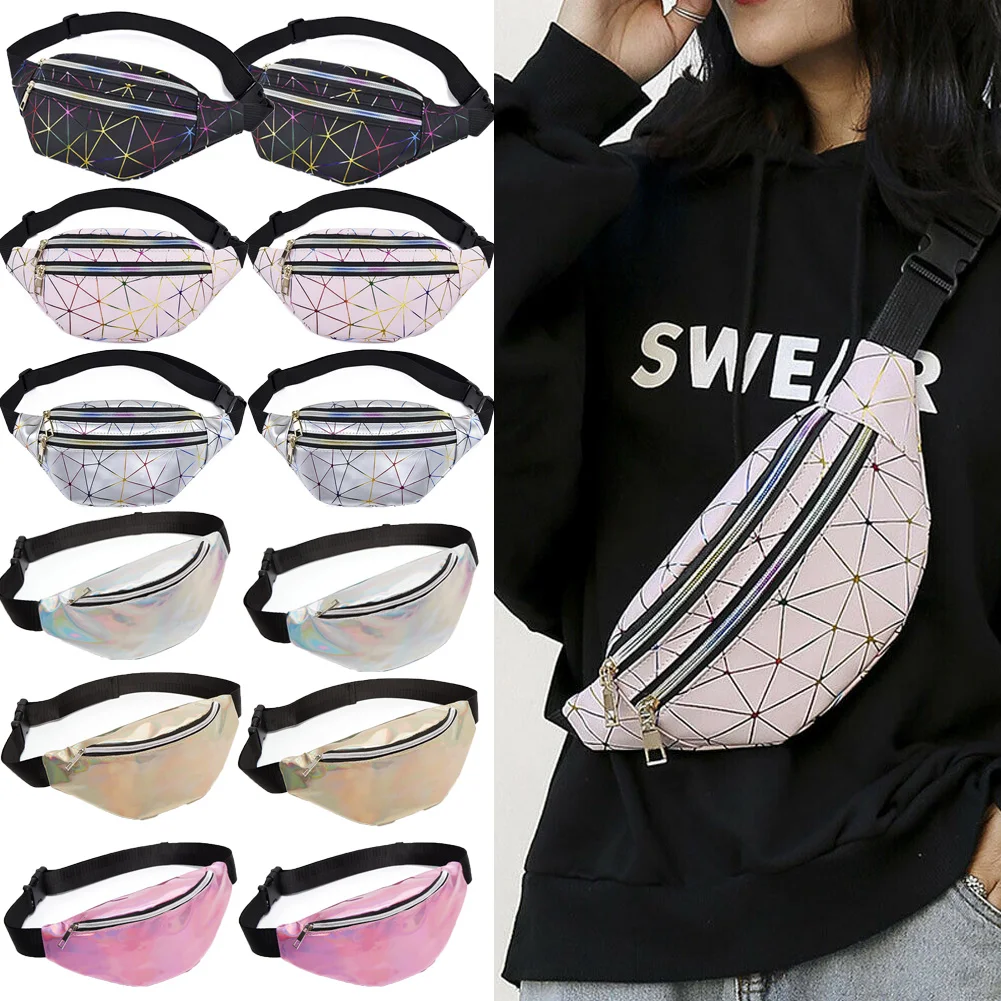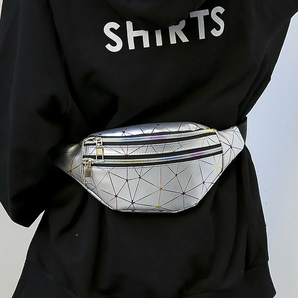 Поясной кошелек унисекс, разноцветные Серебристые забавные сумки с геометрическим узором для мужчин и женщин, нагрудная Сумочка для телефона