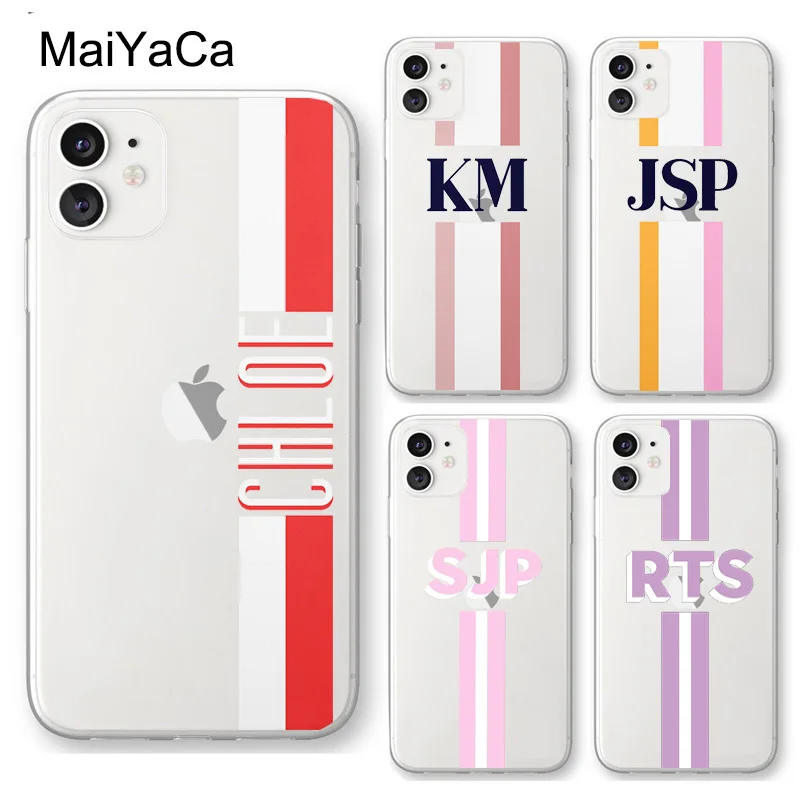 Персонализированный прозрачный чехол с монограммой с инициалами на ...