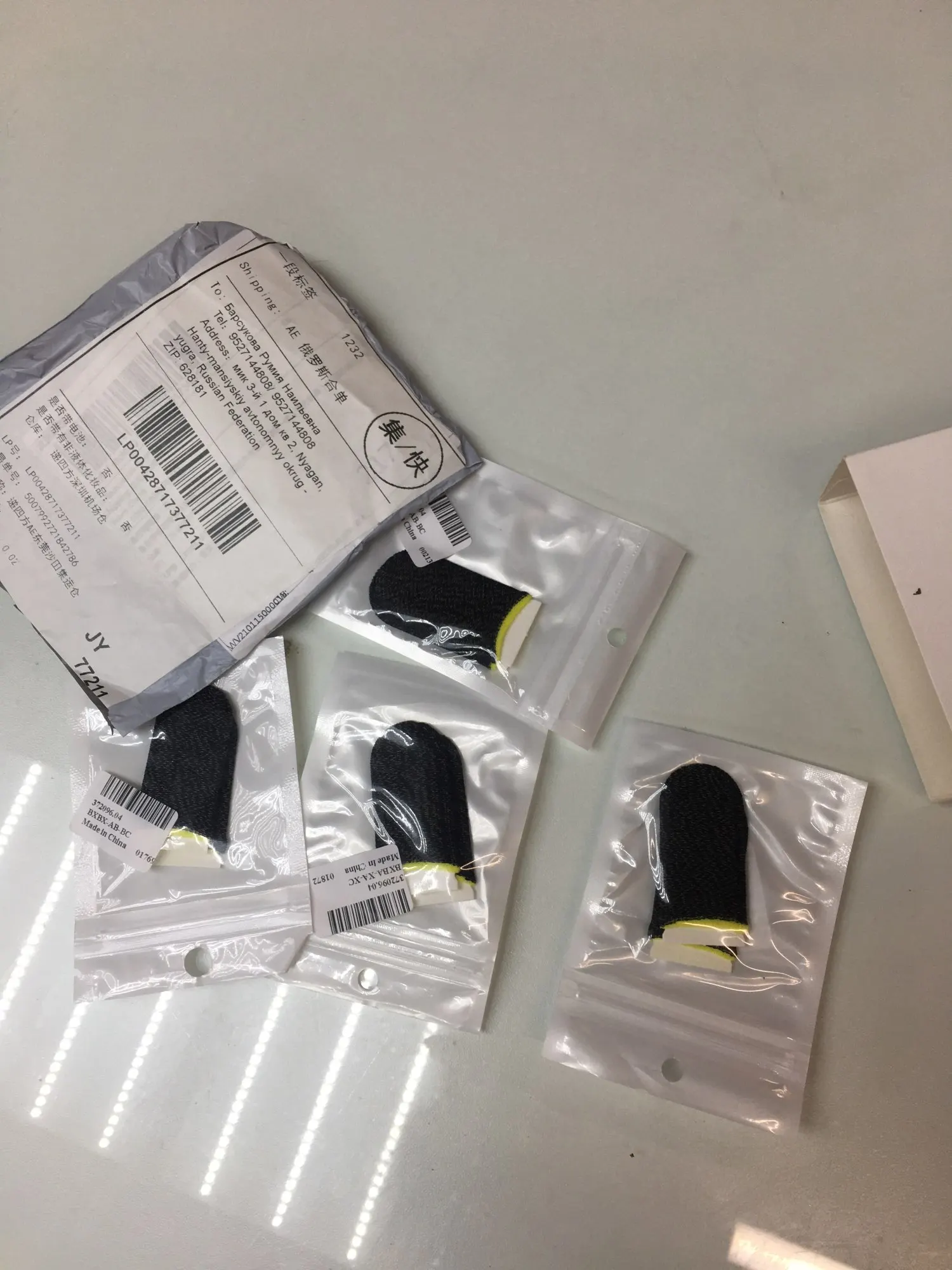 Хорошие напальчники?? не знаю как назвать. Пришли за 4 недели в Москву. Материал эластичный и крепкий, но сами они довольно легкие. Пробовала играть на телефоне в них, довольно удобно. Не очень чувствуешь пальцем экран, но экран чувствует твой палец, рука не потеет в них, сами они с пальцев не сползают, держатся крепко, играть вполне удобно, особенно если рука в обычном состоянии плохо водится по экрану. Только в них неудобно печатать