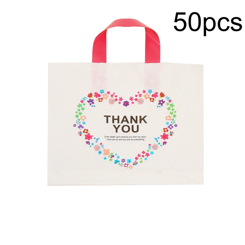 50 шт, спасибо, пластиковые сумки для покупок, сумки для бутиков, сумки для розничной торговли, вечерние подарочные пакеты (33X25X6CM)