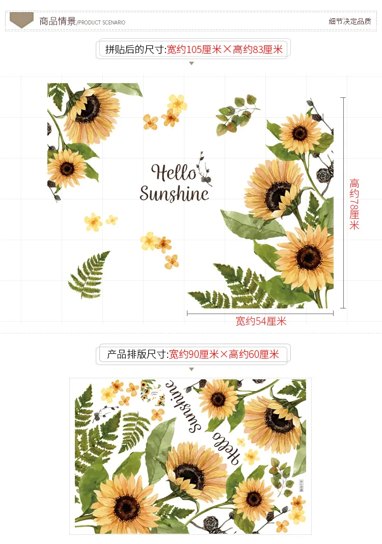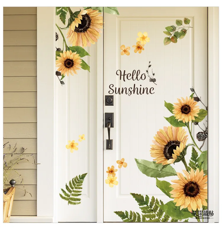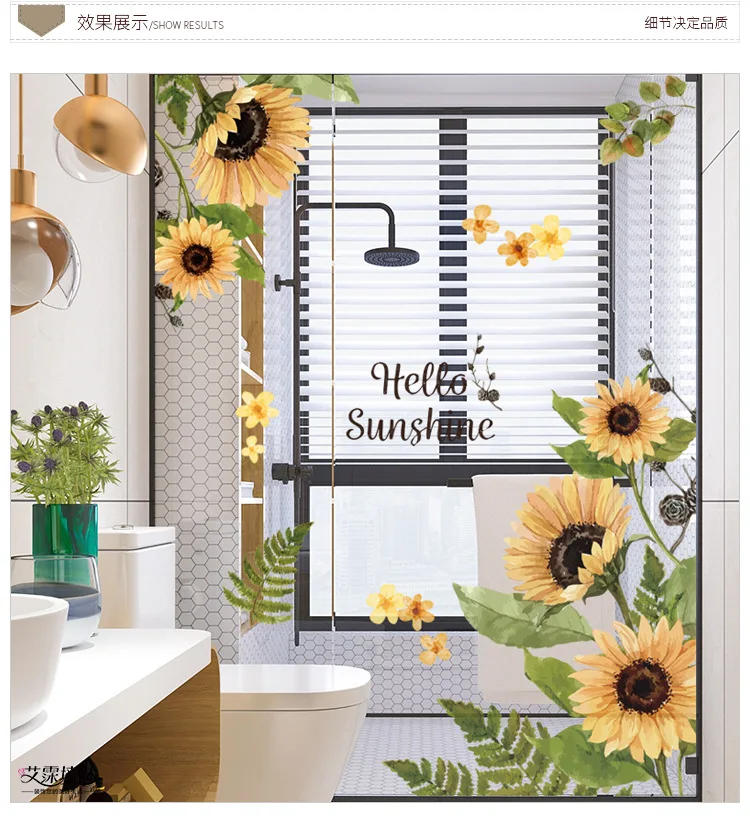 Наклейки на стены из ПВХ, с большим подсолнухом, декоративные постеры из стекла для гостиной, спальни, Цветочные наклейки на стены, винтажный Декор для ванной