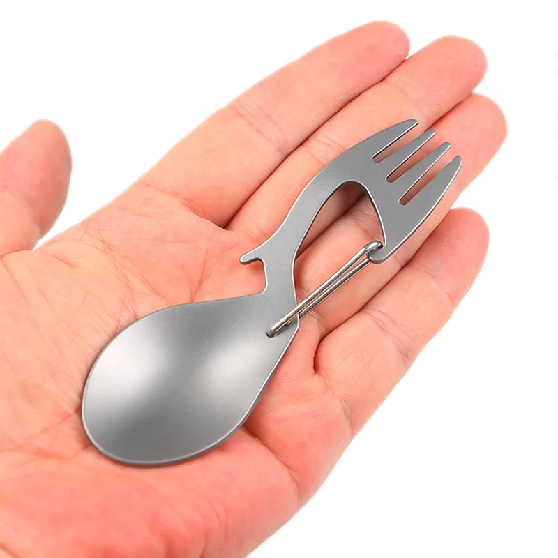 Многофункциональный инструмент титановая конструкция Spork многофункциональная Ложка Вилка карабин открывалка для бутылок Открытый Отдых Пикник посуда