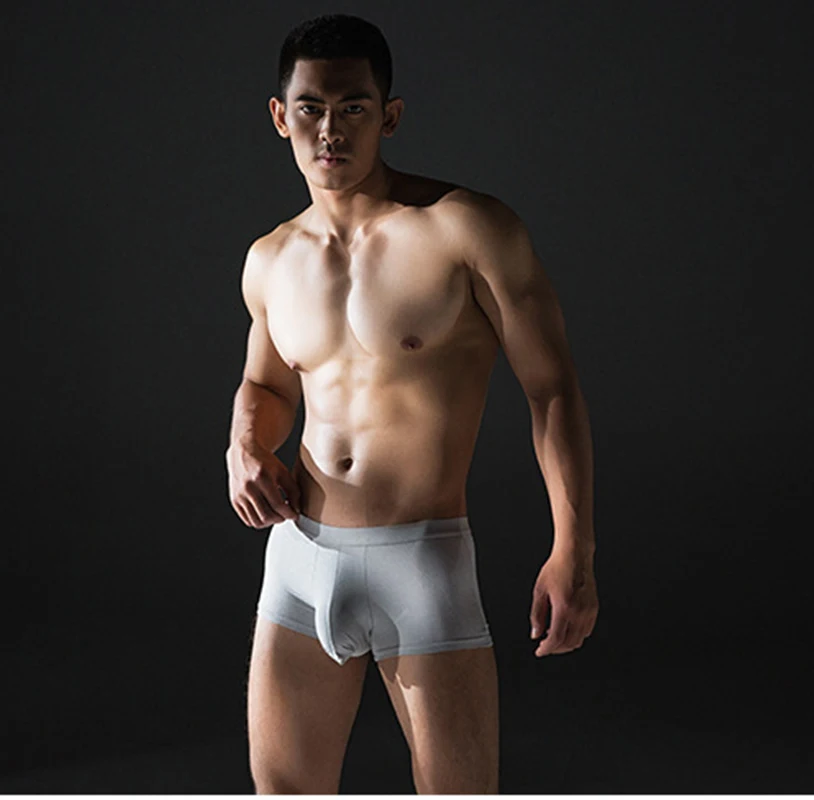 Быстросохнущие мужские Модальные боксеры, бесшовные 3d футляры для носков, сексуальное однотонное нижнее белье