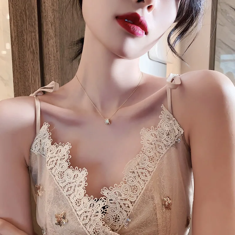 Новинка 2020, корейское милое ожерелье с маленьким круглая подвеска со стразами, женские летние аксессуары, простой модный подарок