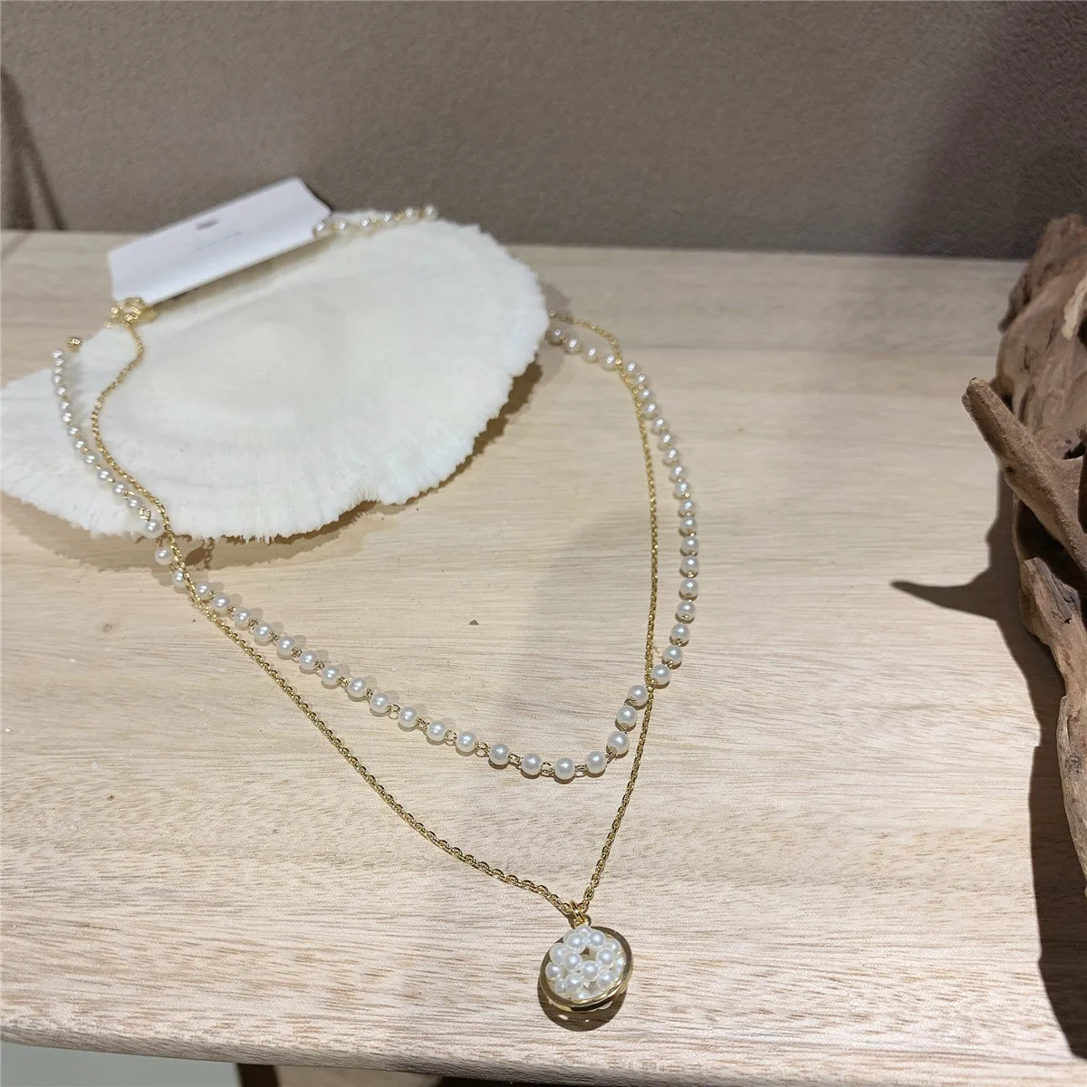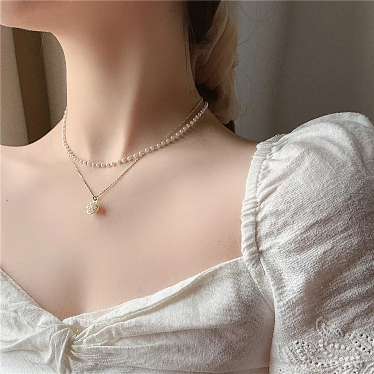 2020 корейский новый дизайн, модные ювелирные изделия, Двойная Цепочка, элегантное женское ожерелье до ключиц с белым жемчугом