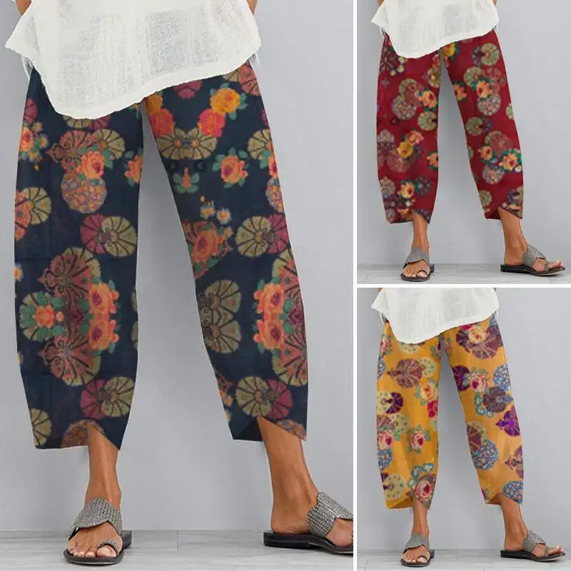Брюки-султанки ZANZEA женские в стиле оверсайз с принтом репы, модные повседневные штаны с цветочным принтом, эластичная талия, 2021