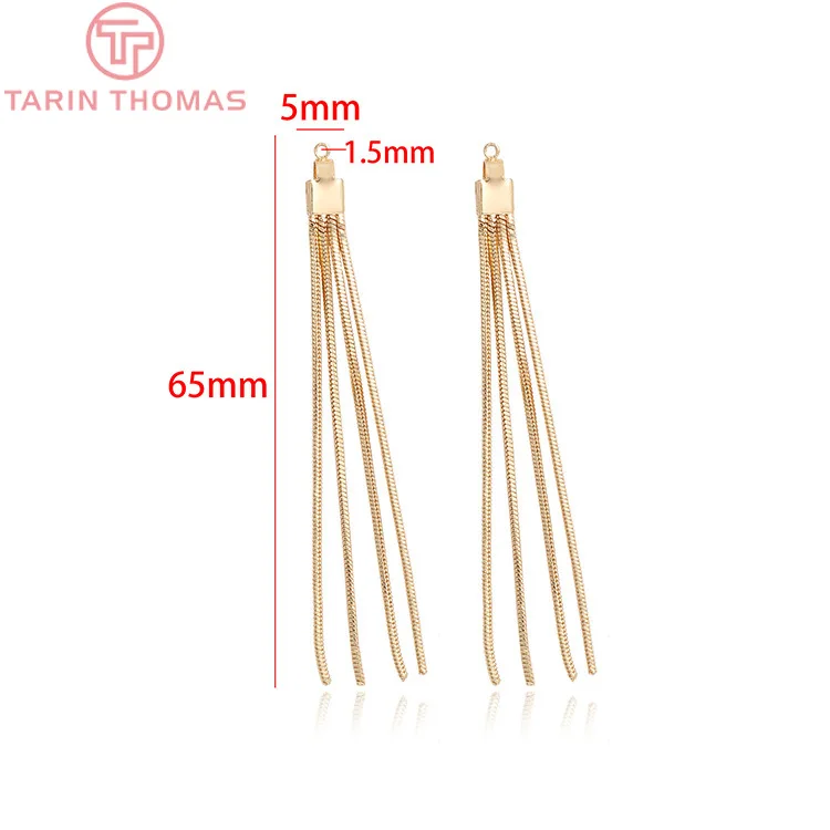 (3749)4 шт, длина 65 мм, отверстие 1,5 мм, позолоченные латунные линии для сережек с 24-каратным золотом, аксессуары для рукоделия