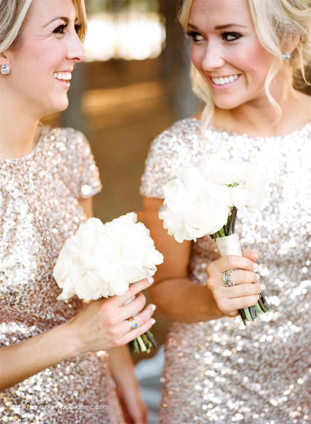 Светоотражающее платье розовое золото с пайетками, Платья для подружек невесты 2020, платье-Русалка для подружки невесты свадебное праздничное платье