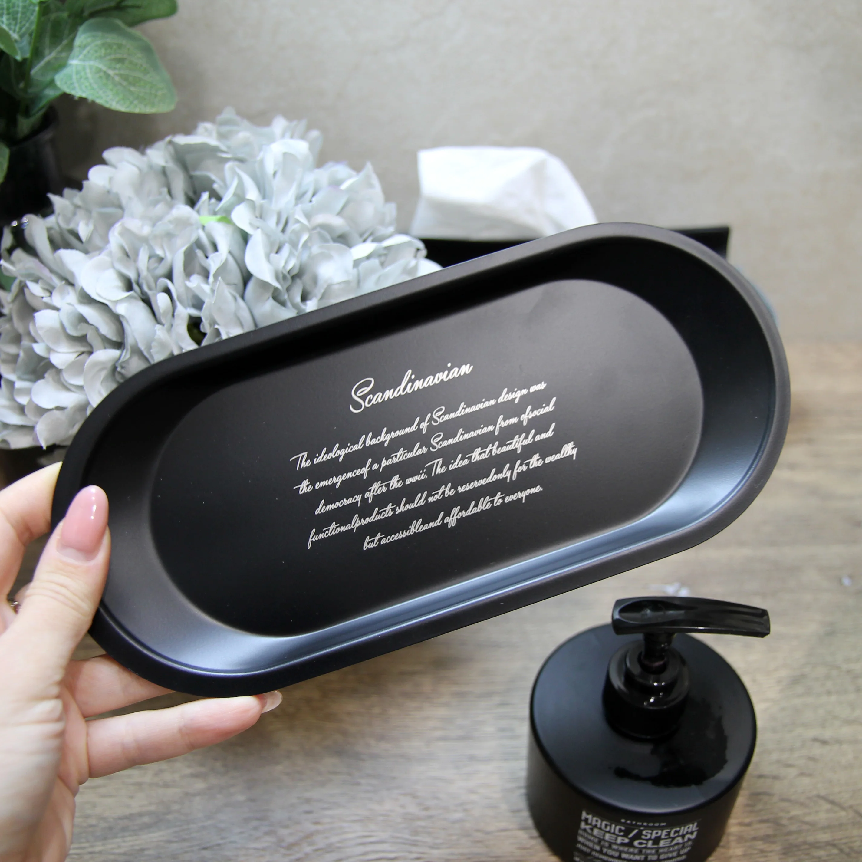 очень красивый поднос, выполнен качественно, только упакован был плоховато, просто в пакетик.Смотрится стильно, металлический надпись это краска, не наклейка в общем я очень довольна. видео можете посмотреть на моем ютуб канале AnNet Elis