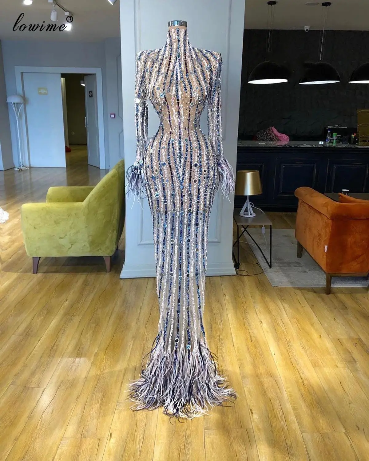 Роскошные вечерние платья с длинным рукавом прозрачные платья-русал...