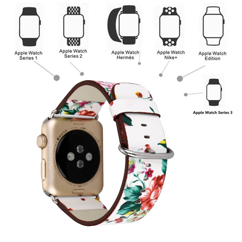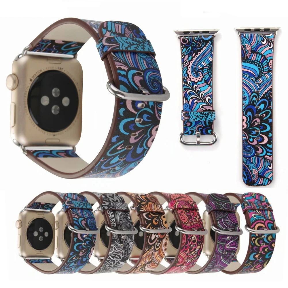 Ремешок из натуральной кожи для Apple Watch, браслет с цветочным пр...
