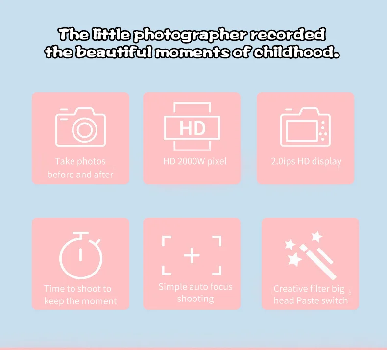 Компактная, но полезная мультяшная игрушка с автоспуском для детей сделает вашего ребенка более красивым в мире.
