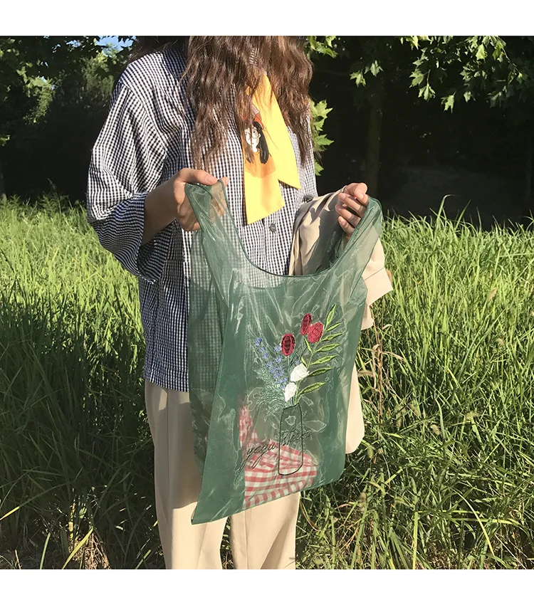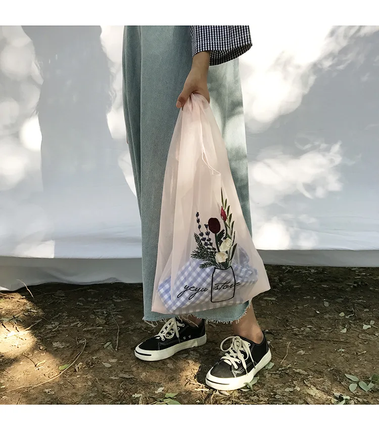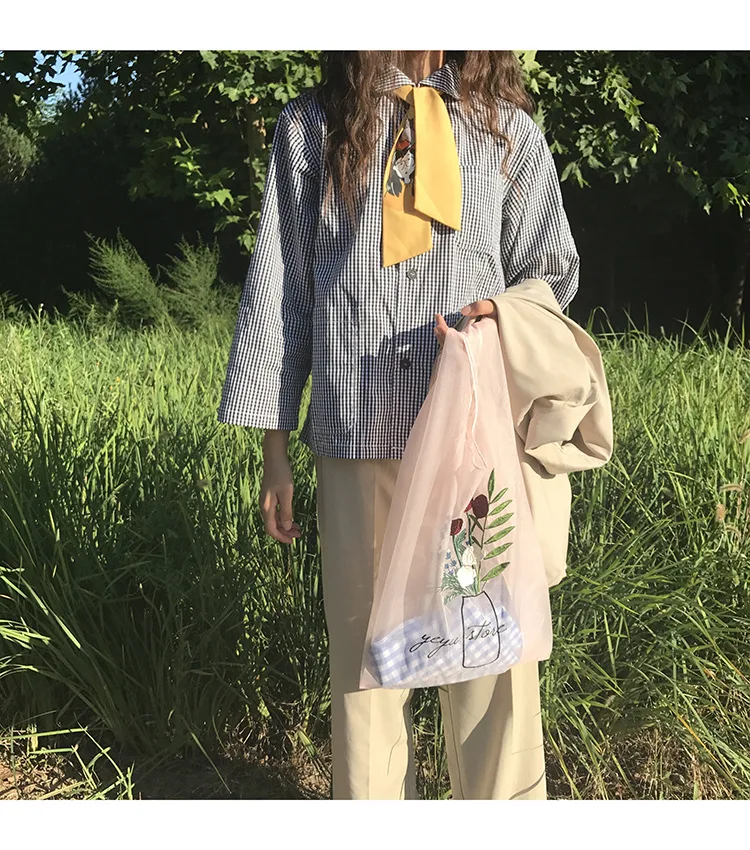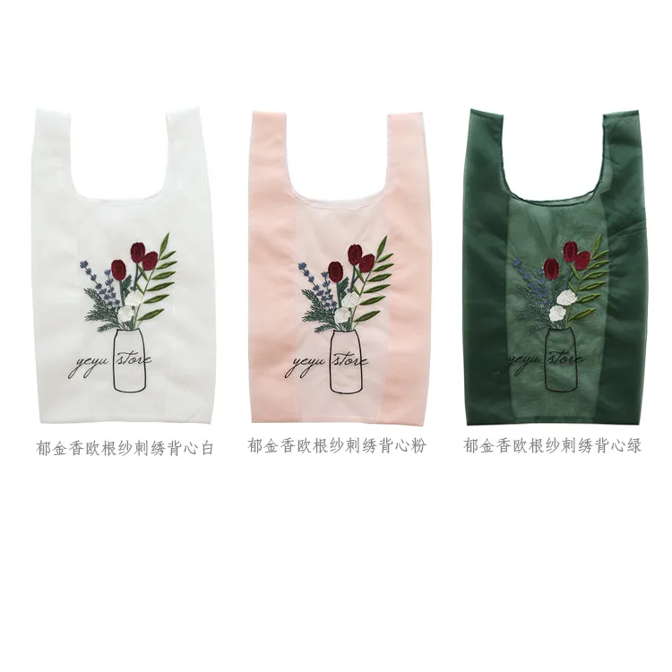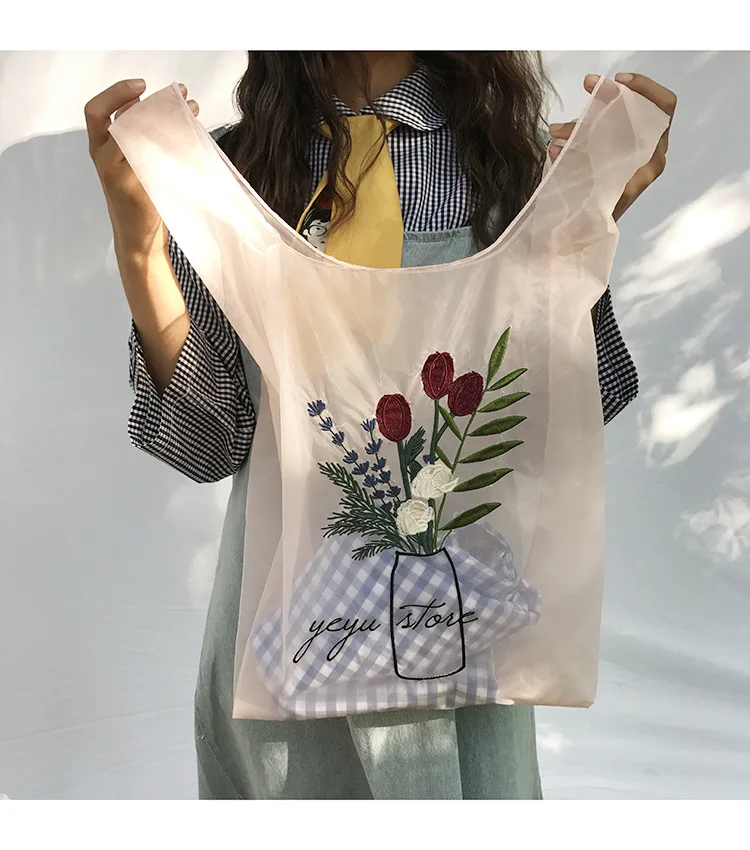 Сумка-тоут женская летняя, из органзы, с вышивкой