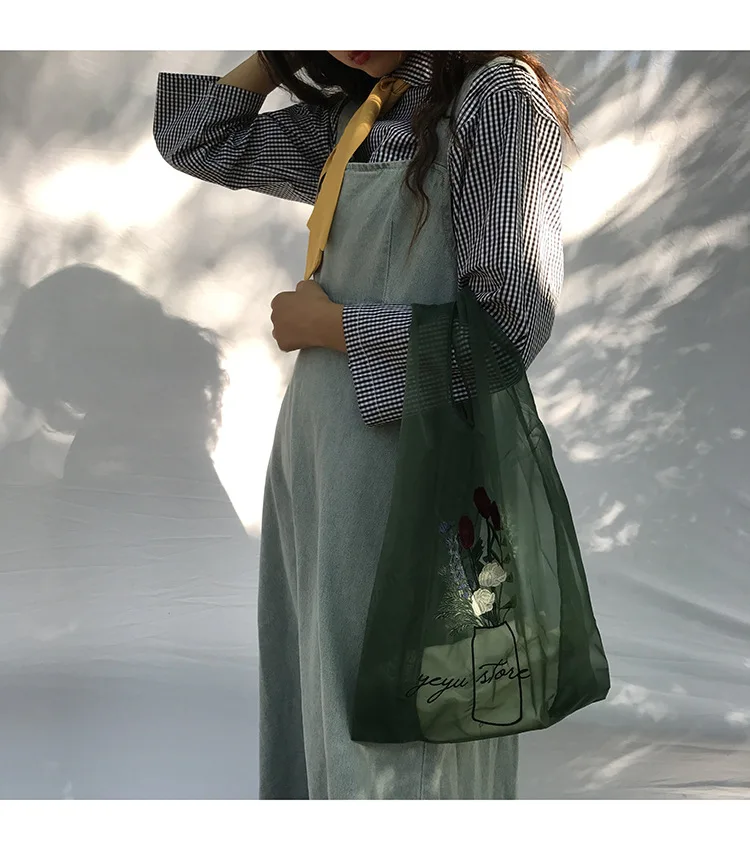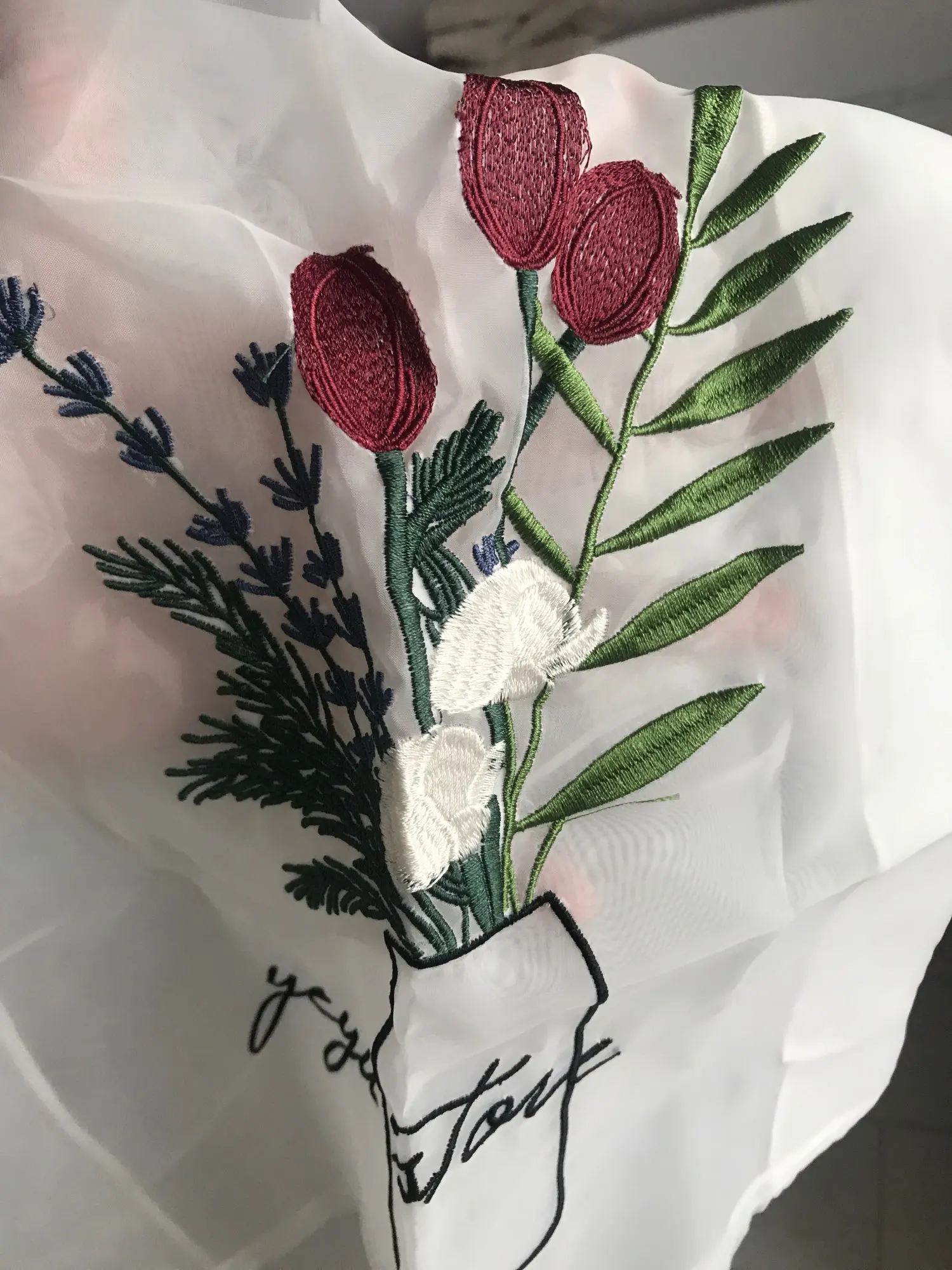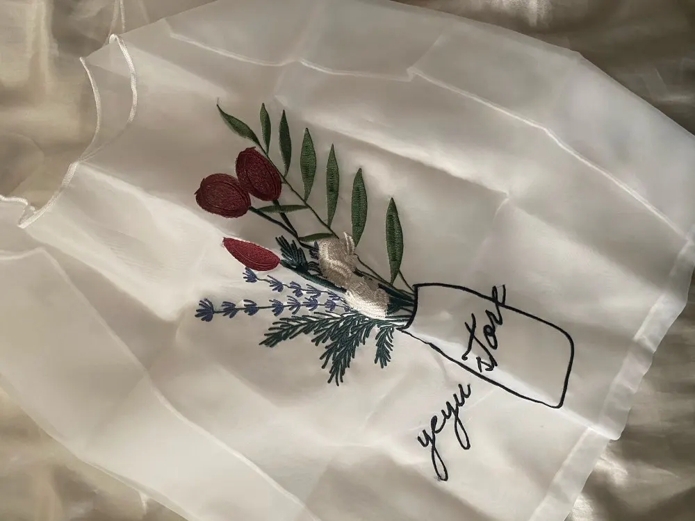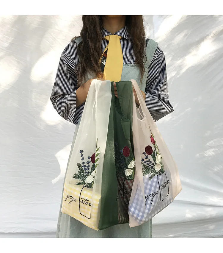Сумка-тоут женская летняя, из органзы, с вышивкой