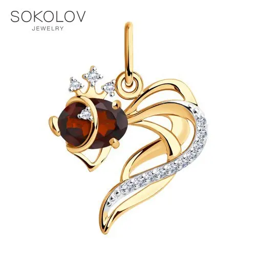 Подвеска SOKOLOV из золота с гранатами и фианитами, Золото, 585, Ор...