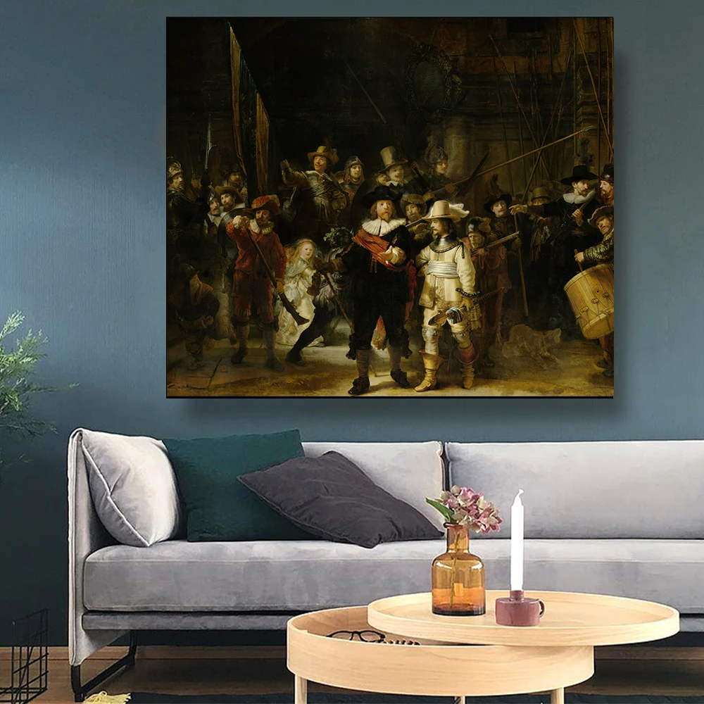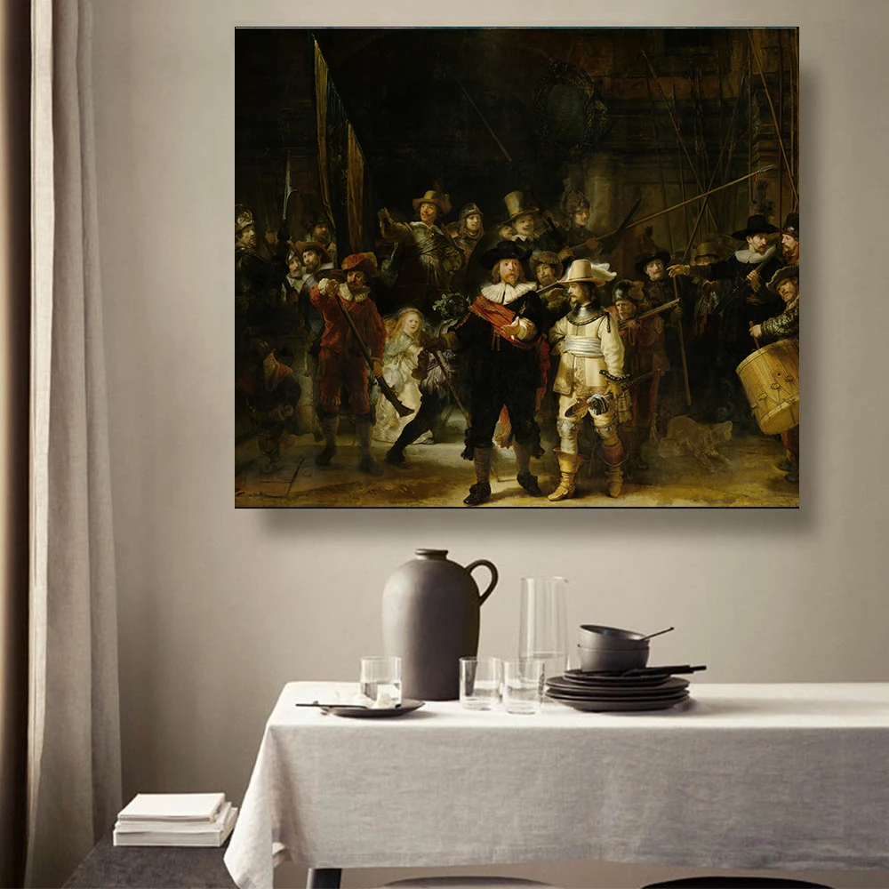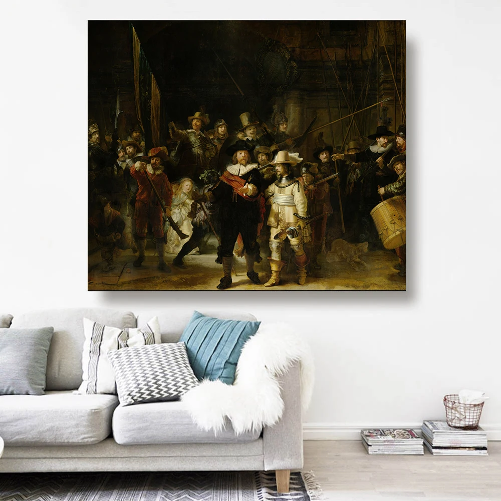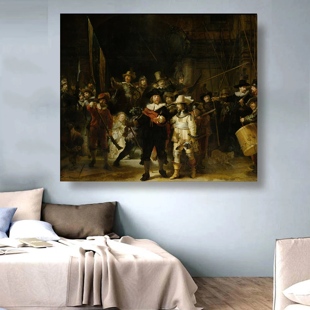 Картина The Night Watch Рембрандт на холсте, известный постер с изображением искусства, современный настенный Декор, украшение для дома, гостиной