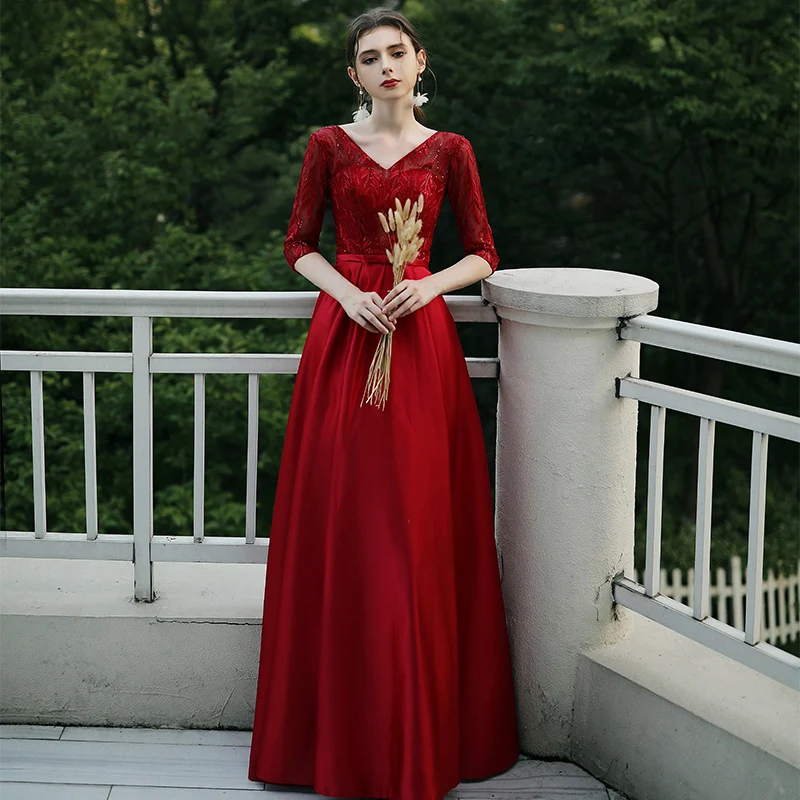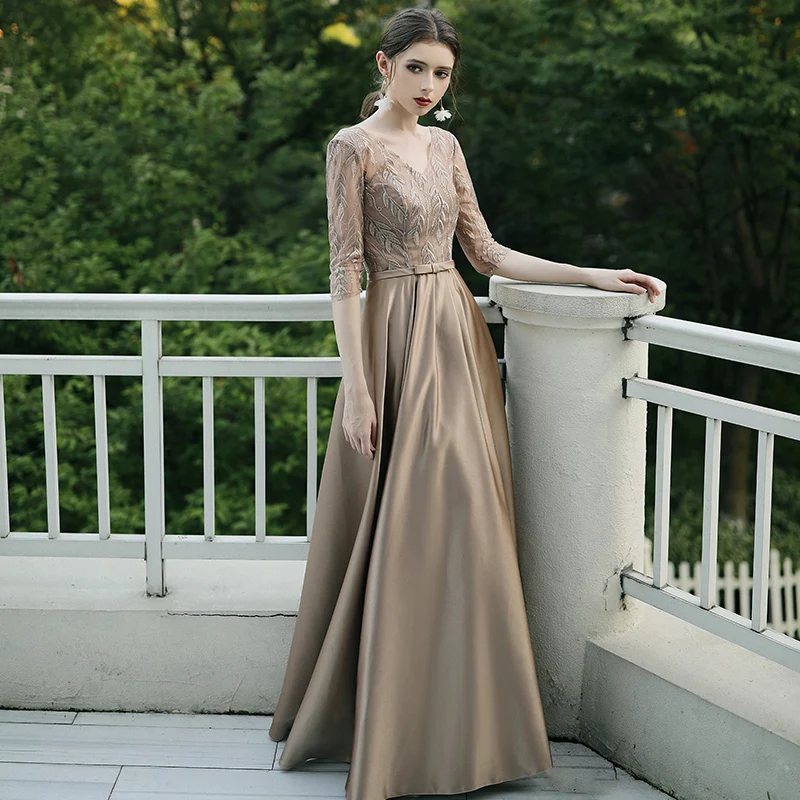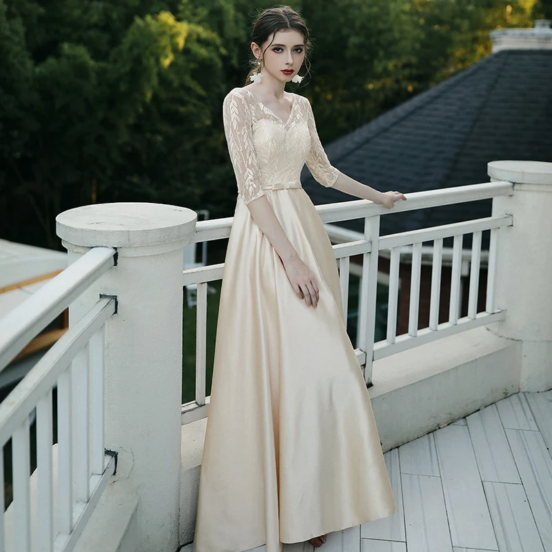 Женское вечернее платье с круглым вырезом, длинное кружевное атласное платье с рукавом до локтя, для свадьбы, вечеринки, церемонии, размера плюс платья на заказ