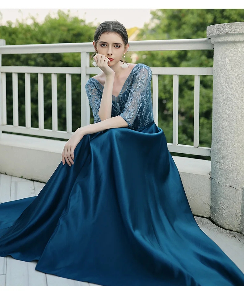 Женское атласное вечернее платье, длинное кружевное платье на свадь...