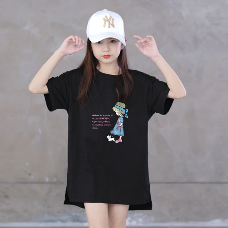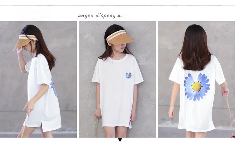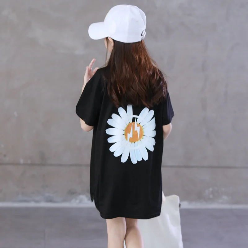 Футболка для девочек Летняя Детская длинная футболка нижняя рубашка белая футболка с принтом маргариток для девочек, детская одежда для детей 10-12 лет