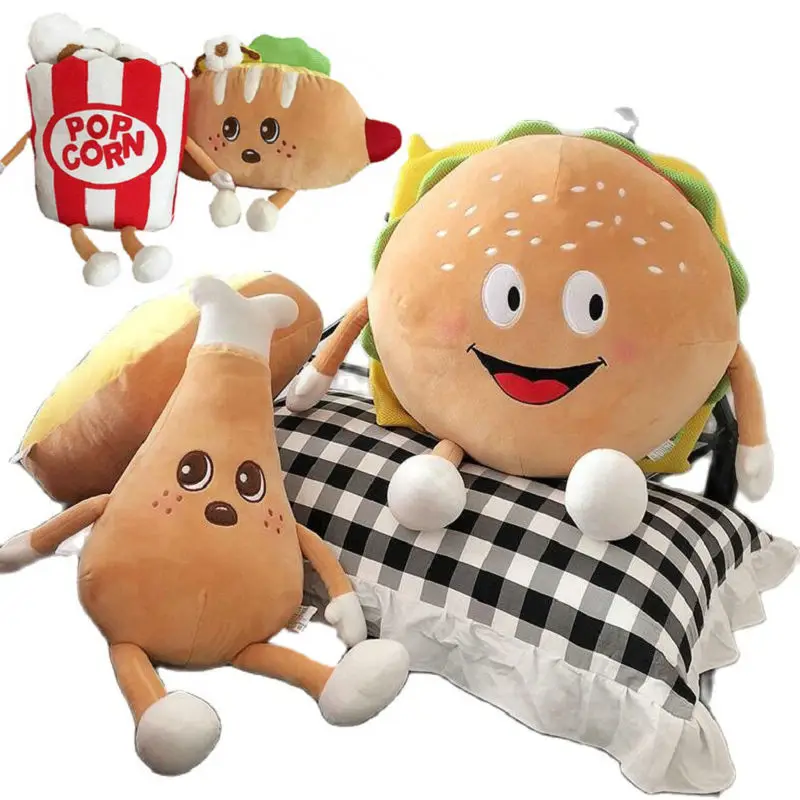 Мягкая игрушка для фаст-фуда, плюшевая кукла-гамбургер, жареные куриные ножки, набивная подушка, хот-дог, Мужская Подушка, игрушка для магазина фаст-фуда