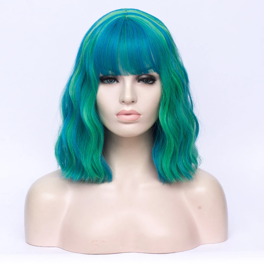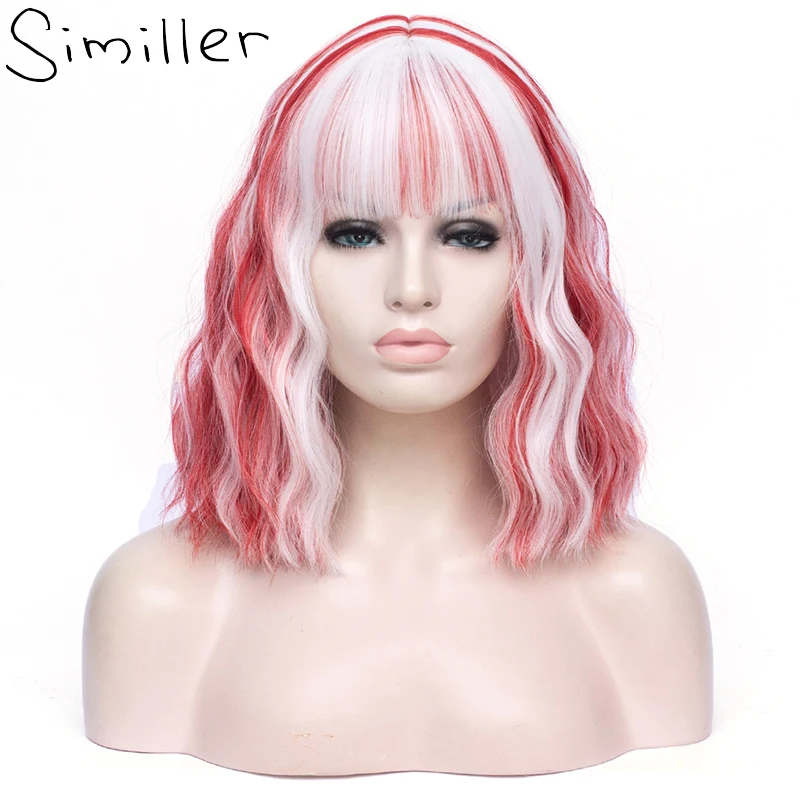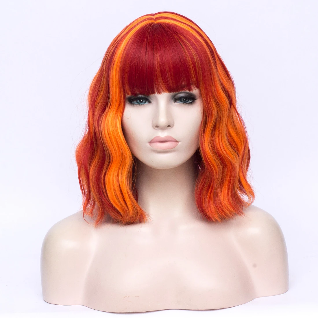 Женский костюм для косплея Similler, короткие волнистые волосы с эффектом омбре, вечерние синтетические парики, зеленый, оранжевый, белый, красный, смешанные цвета