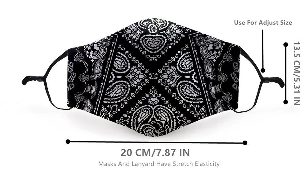 Многоразовая маска для рта с фильтром смываемая маска для лица, Пылезащитная, ветрозащитная, с 3D-принтом Пейсли