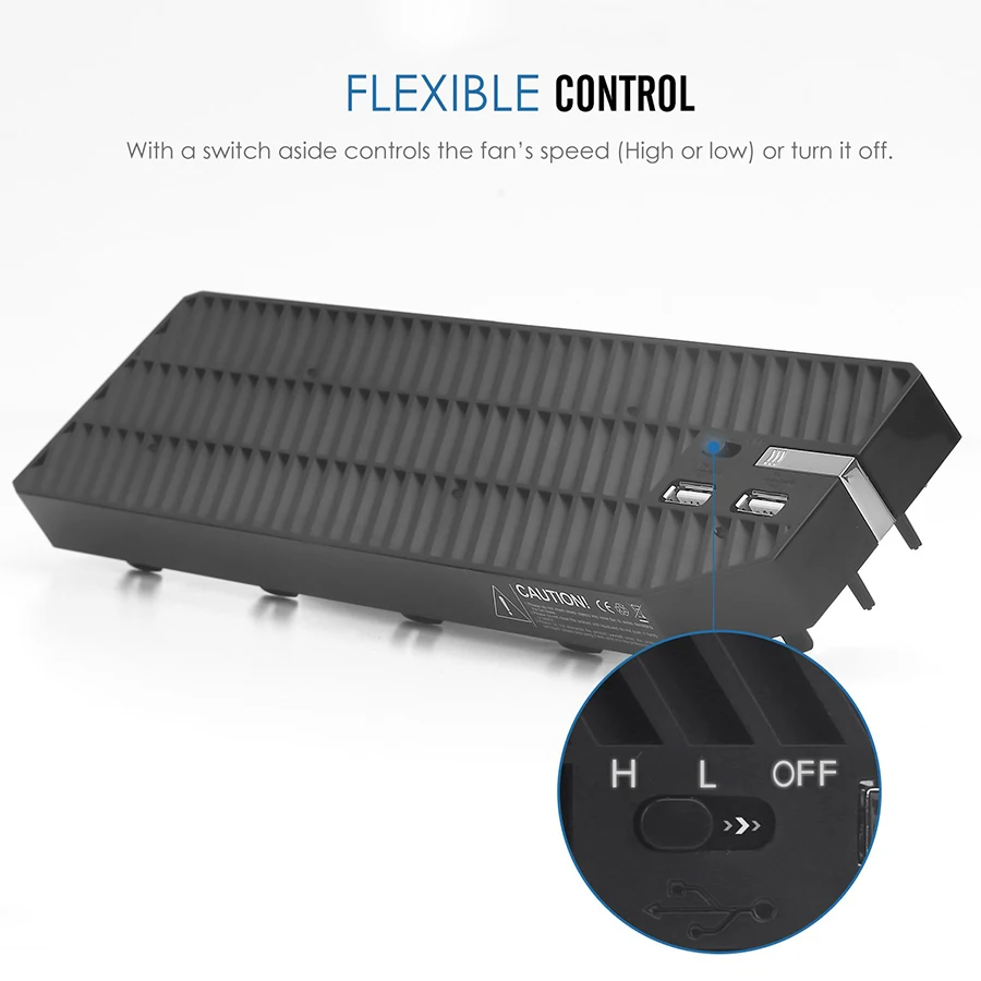 Мы разработали и произвели этот охлаждающий вентилятор для охлаждения и ускорения циркуляции воздуха вентилятора. При использовании извлеките Пыльник возле воздухозаборника на консоли. Затем подключите интерфейс micro USB вентилятора к консоли. Вентилятор имеет две передачи. H gear express высокая скорость ветра и L gear express низкая скорость ветра. Выключение Экспресс-выключения. Вентилятор может ускорить циркуляцию воздуха и имеет два расширенных порта USB. Это не влияет на внешний вид консоли и повышает практическую производительность theconsole.