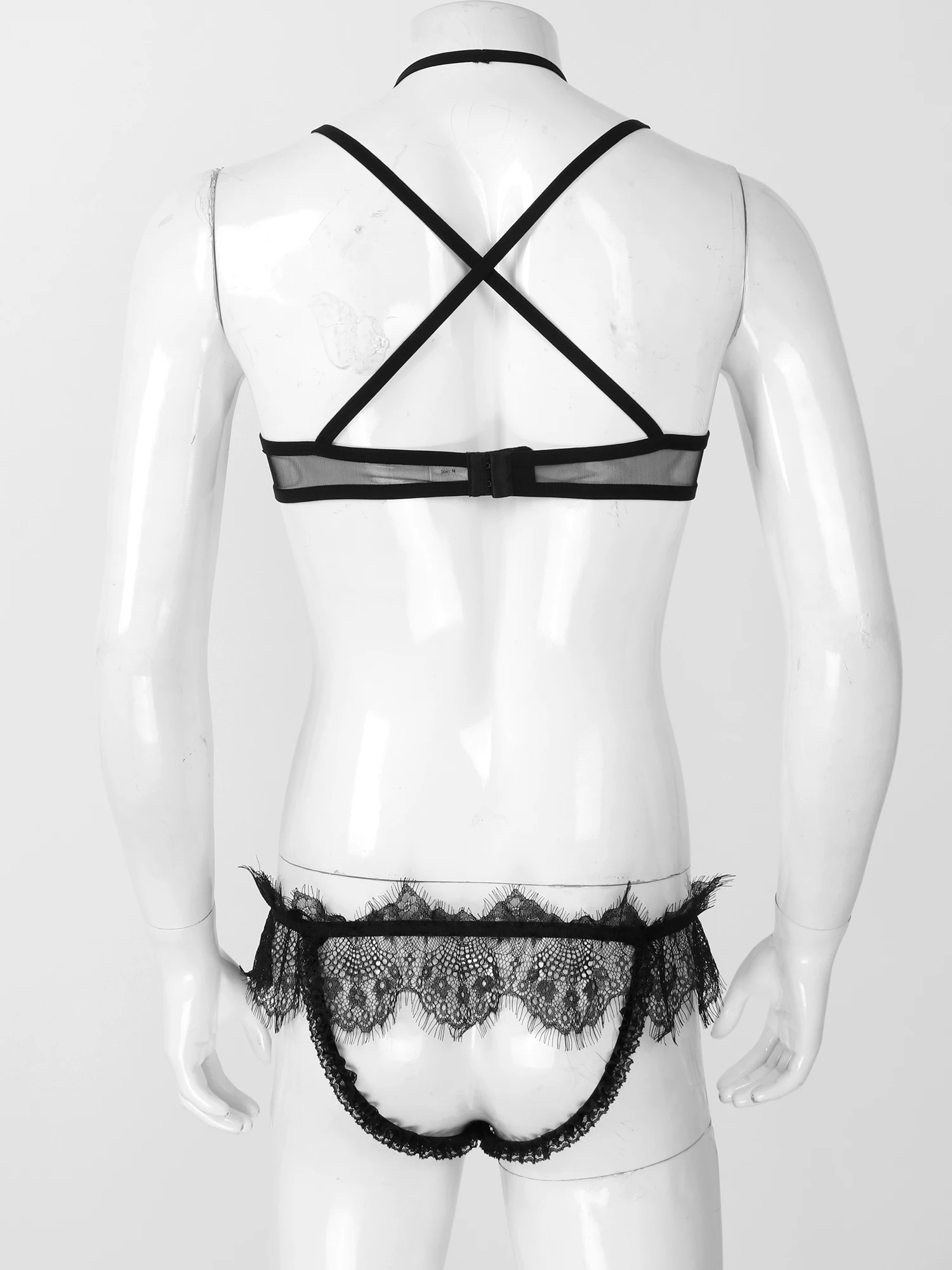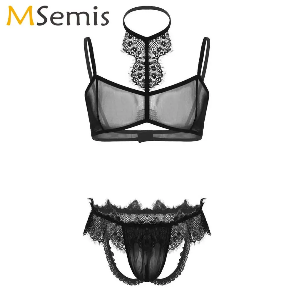 Мужские сексуальные открытые трусы на лямках + бюстгальтер на лямках Lenceria Sissy, комплект нижнего белья из прозрачной сетки, комплекты нижнего белья, ночная одежда для геевМужская сексуальная одежда для сна Lenceria, прозрачная сетчатая одежда для геев, комплект нижнего белья, фетиш, кружевной бюстгальтер с открытой спиной, трусики-стринги