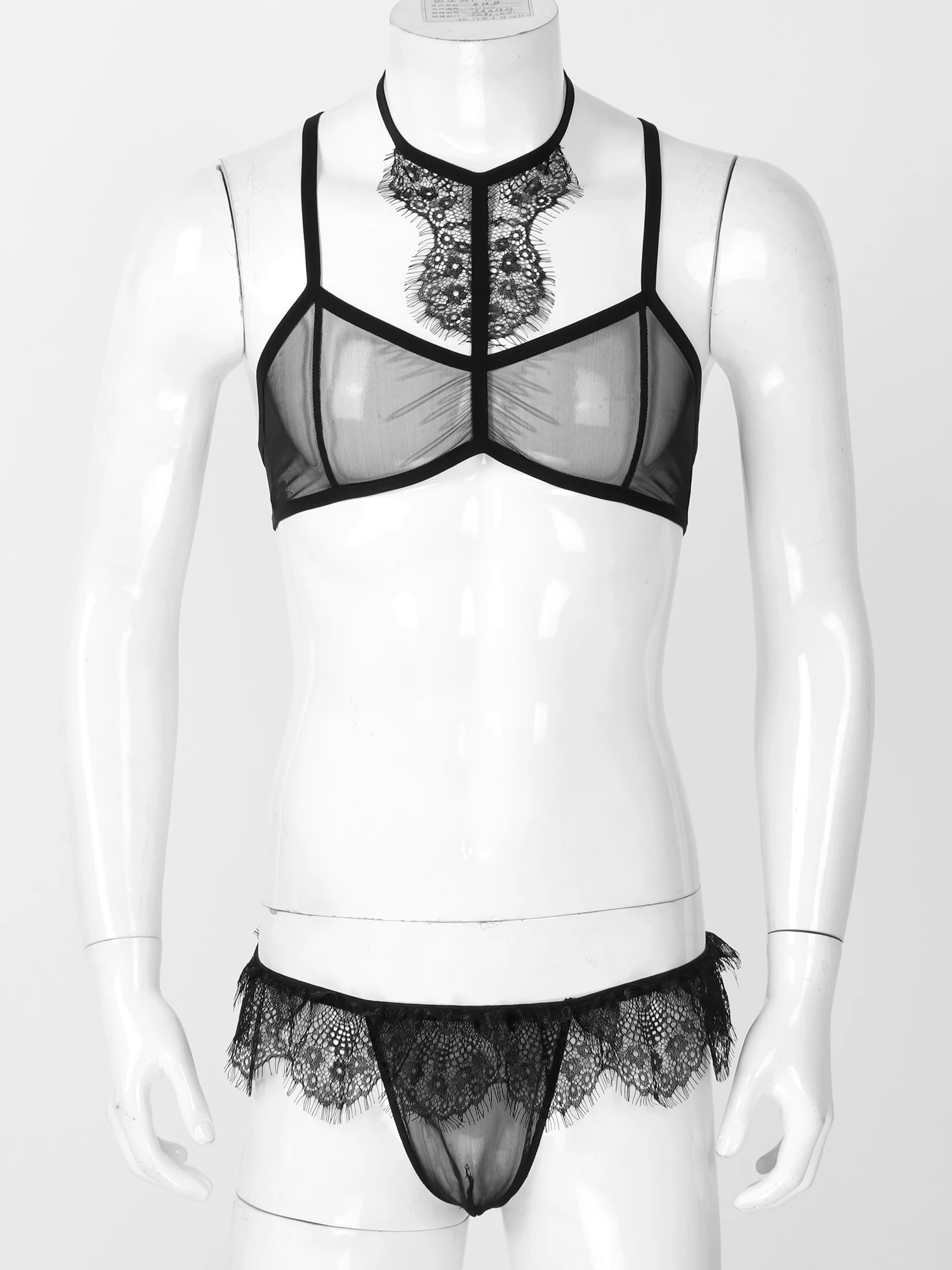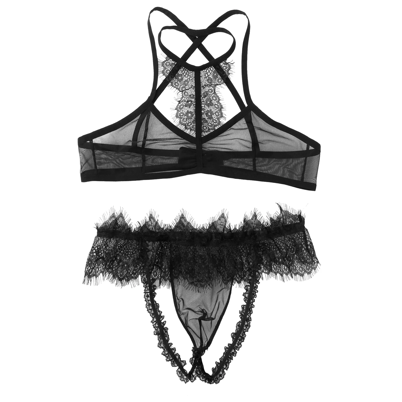 Особенности:Мужское шелковое Прозрачное нижнее белье в сетку, сделает вас горячим и привлекательным.Топ с лямкой на шее, перекрещивающимся сзади бюстгальтером, сзади с застежкой на крючок и глаза, нижнее белье с низкой посадкой и бантиком, открытая прикладом.Прозрачный Сетчатый Дизайн, отделанный кружевом с оборками. Хорошая эластичная ткань, дышащая и приятная для кожи, удобная в носке.Идеально подходит для сна, сна, романтической ночи, свадебной ночи, лучший подарок на День святого Валентина для ваших любимых.Пожалуйста, внимательно проверьте размер перед размещением заказа, ручная стирка в холодной воде.