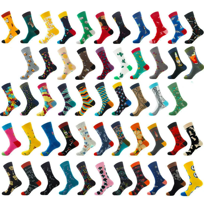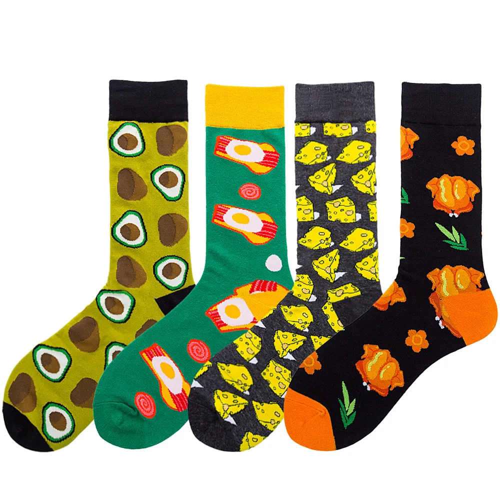 Новинка, веселые забавные мужские носки с графическим рисунком, чесаный хлопок, омлет, лягушка, сумасшедший гамбургер, лосось, кукуруза, авокадо, птица, рыба, носки, рождественский подарок