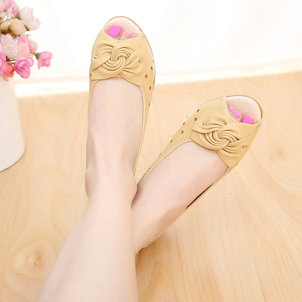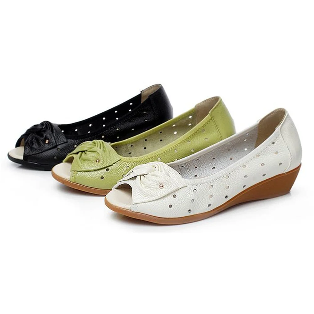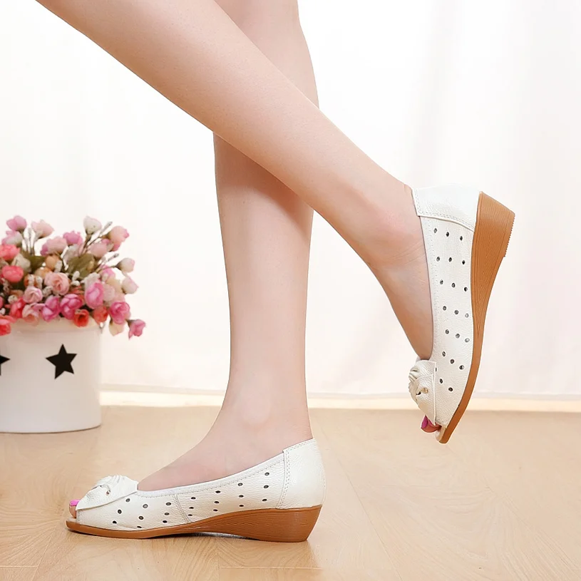 Tilocowженские босоножки из натуральной кожи; Летние туфли на танкетке; Женская обувь с бантом-бабочкой; Обувь для мам с закрытым каблуком; 2020
