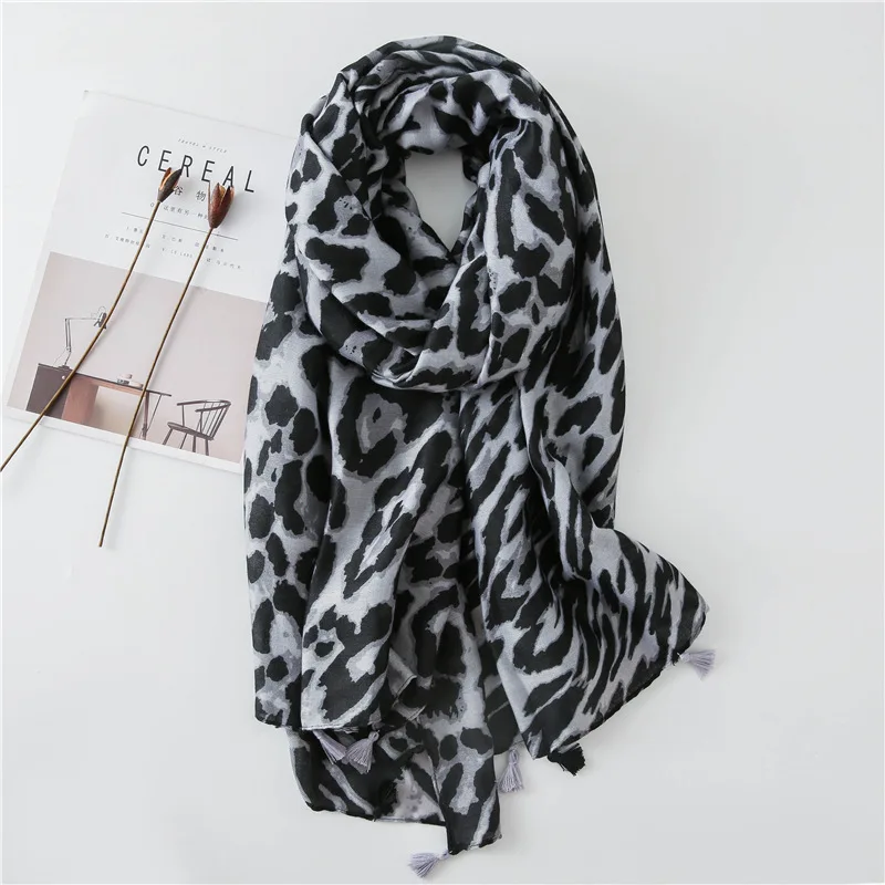 Шарф из вискозы, с леопардовым принтом, с кисточками, для осени и зимы
