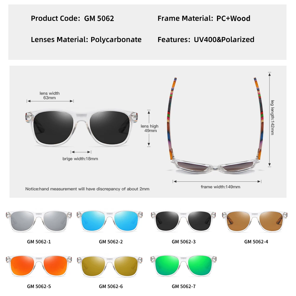 Поляризованные солнцезащитные очки GM для мальчиков и девочек с переработанной оправой и цветными деревянными дужками S5062