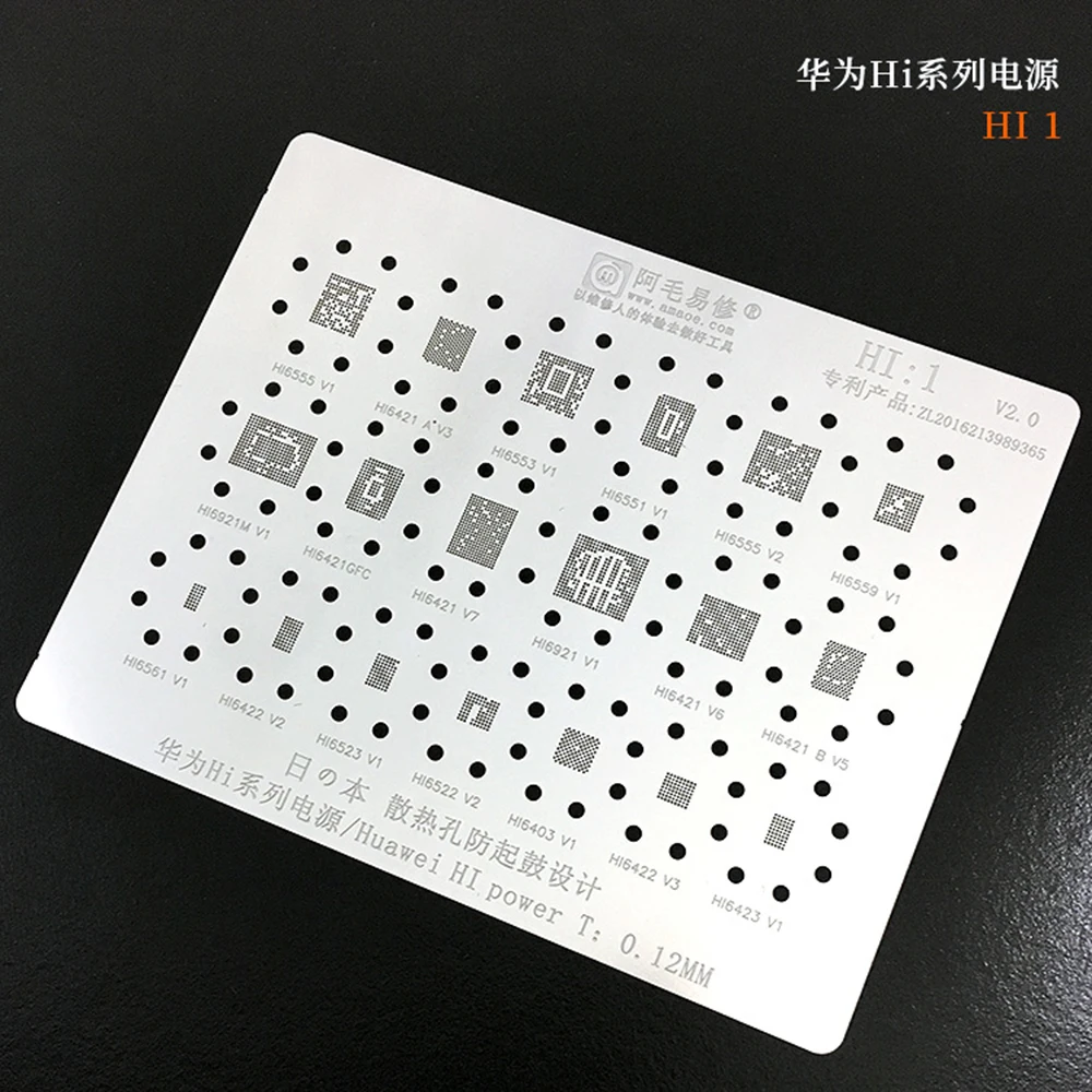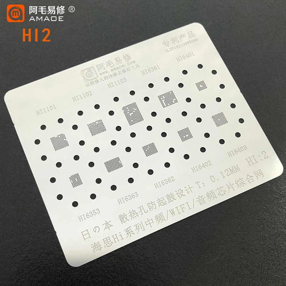 Amao BGA трафарет для трафаретов, Оловянная сеть для Huawei Hi Power CPU WCD Audio WCN WiFi IC 0,12 мм Hi1/Hi2/HU1/HU2/HU3