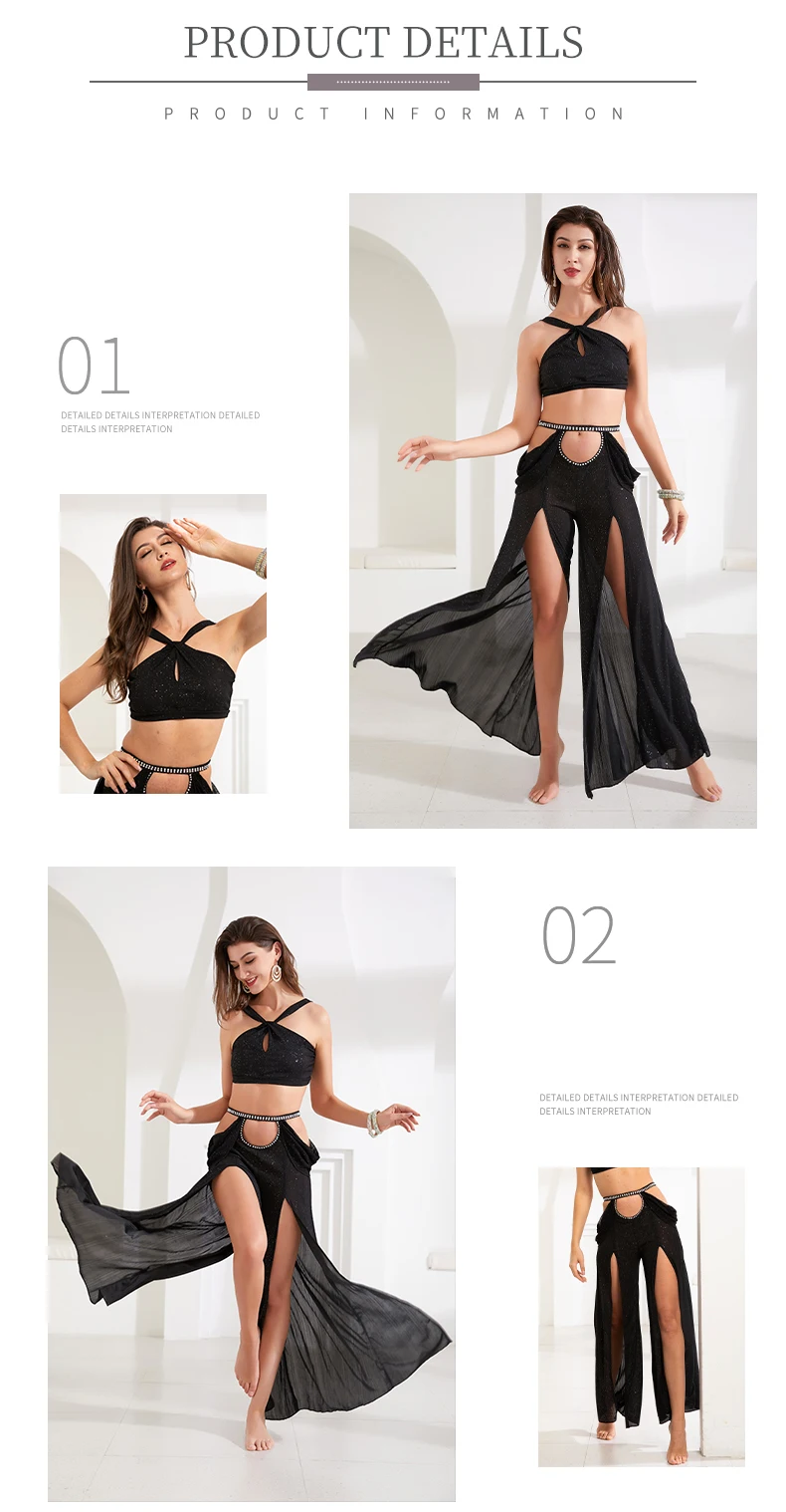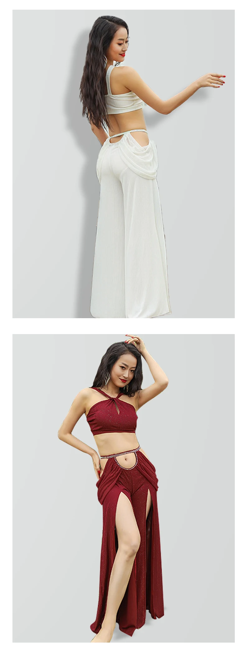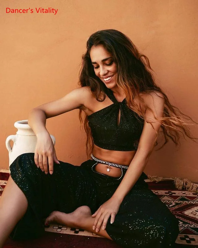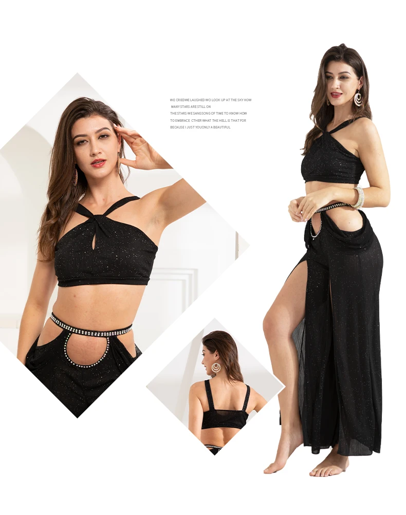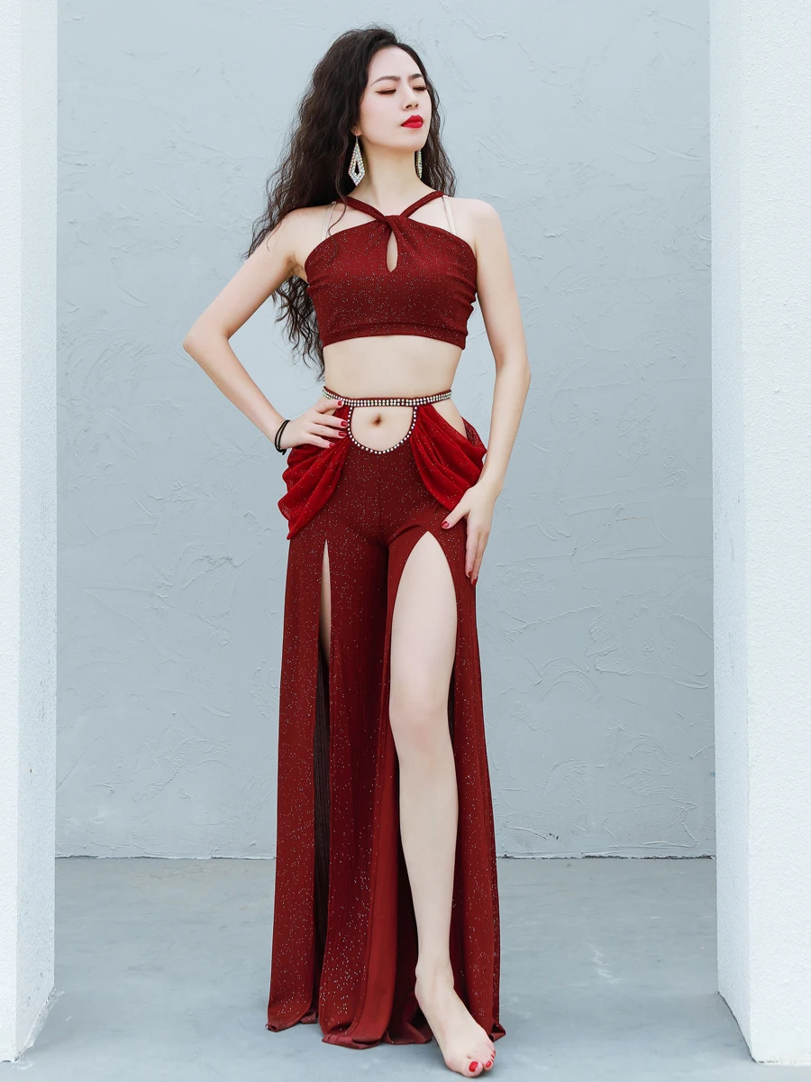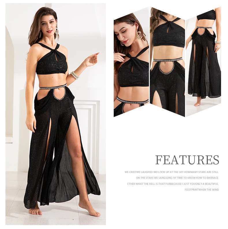 Женский костюм для танца живота, тренировочная одежда , новая сексуальная Длинная юбка с разрезом + Топ , комплект для танца живота