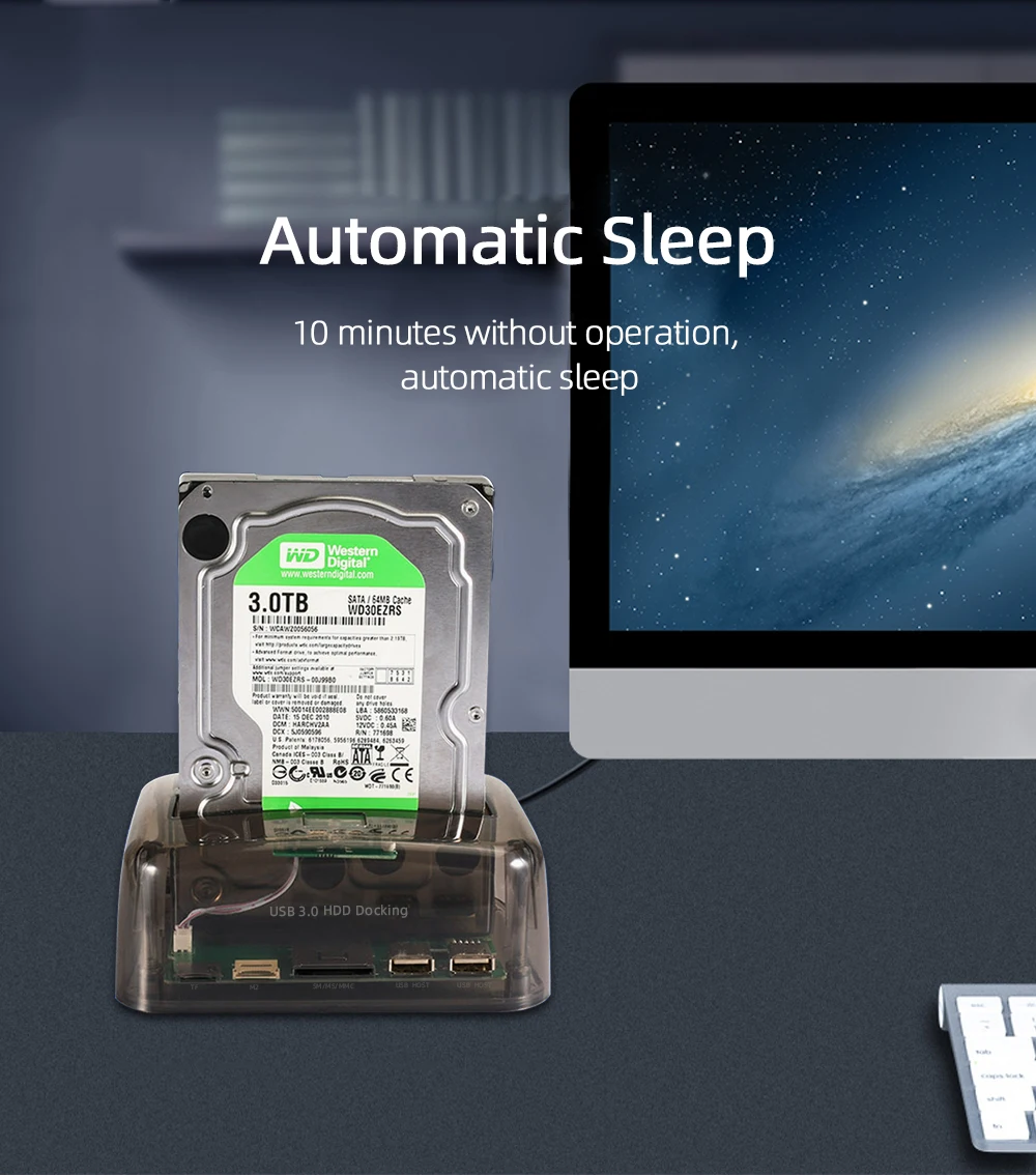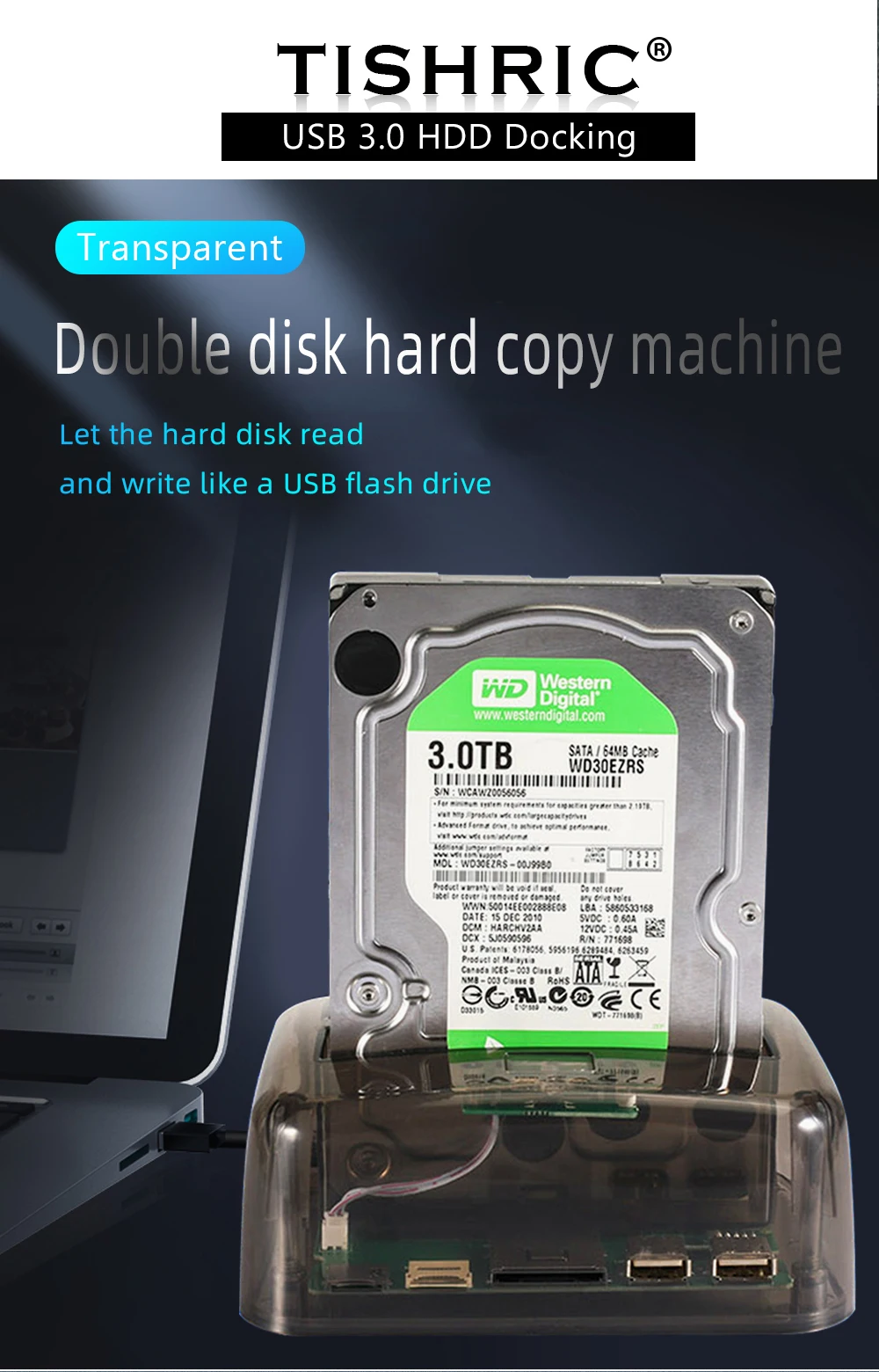 Док-станция TISHRIC для жесткого диска, USB 3,0 2,5 дюйма 3,5 дюйма IDE SATA, внешний прозрачный бокс для жесткого диска, чехолкорпус для жесткого диска