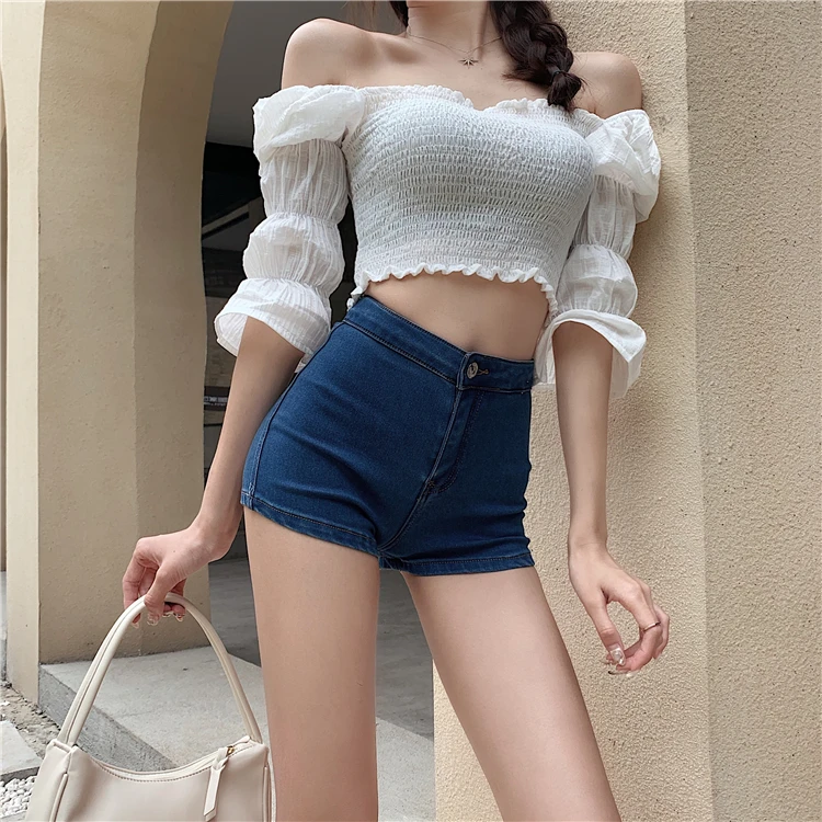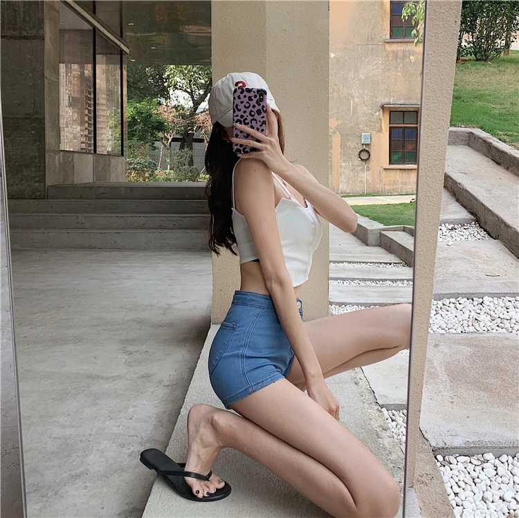 Женские джинсовые шорты, узкие шорты небесно-голубого или черного цвета, лето 2022