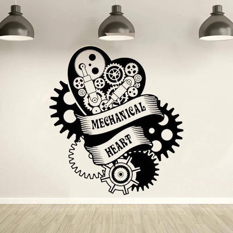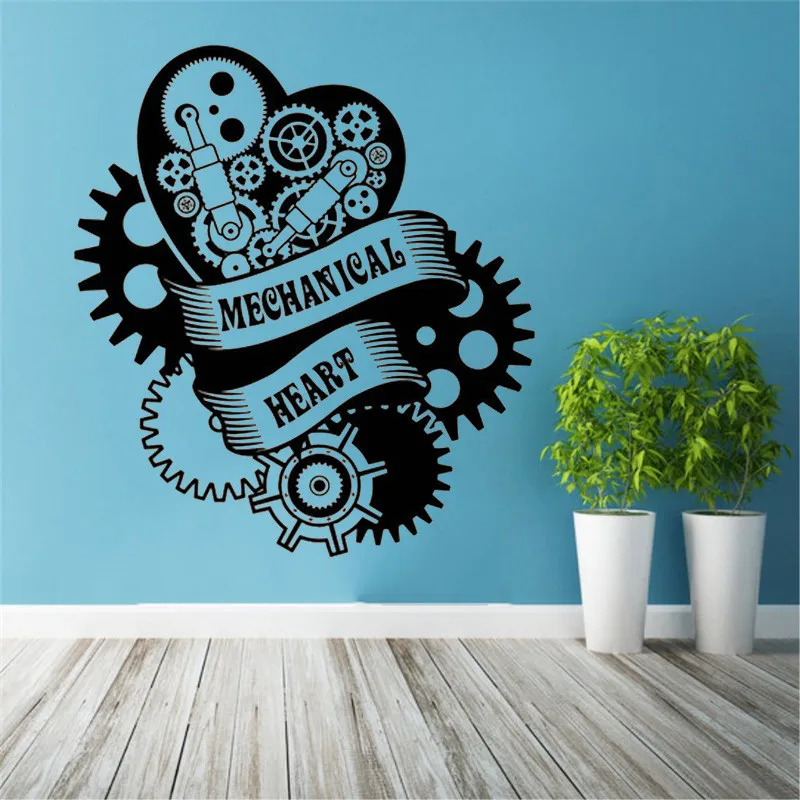 Стимпанк виниловая наклейка на стену Механическое сердце двигатель гараж Наклейка на стену ремонт автомобиля Съемная Настенная роспись wal art HJ1104