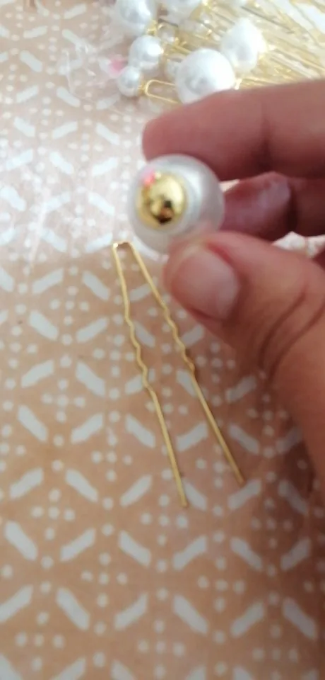 V pretty. Жемчужины прикрепляются к булавке. Шпильки, однако, нежные и могли бы удерживать более тяжелые волосы, если они немного толще, но они хороши по цене, спасибо