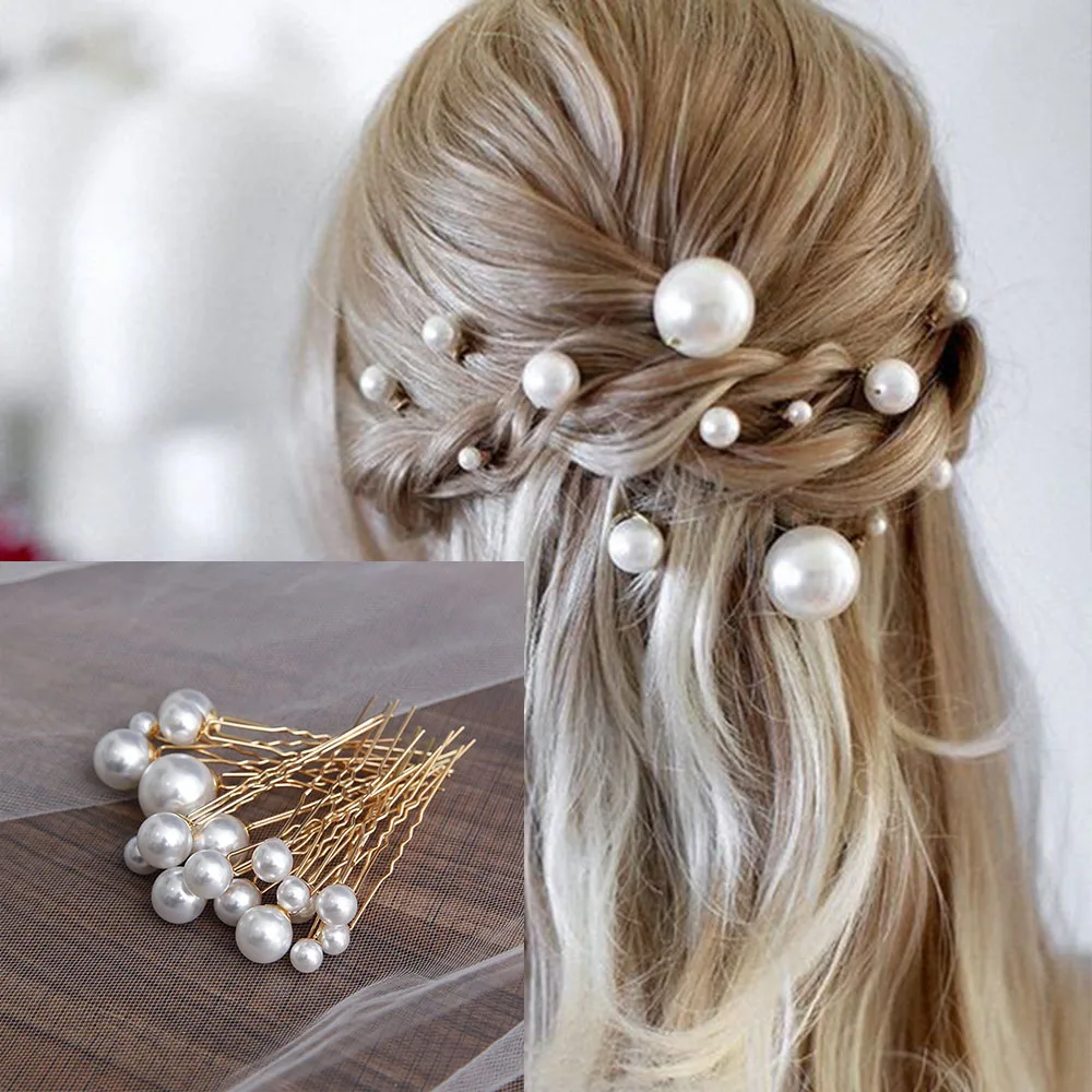 U-образная заколка для волос, с искусственным жемчугом, 18 шт.кор.