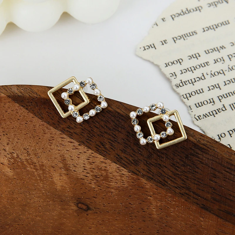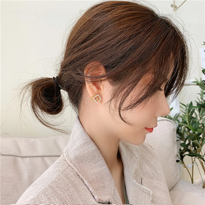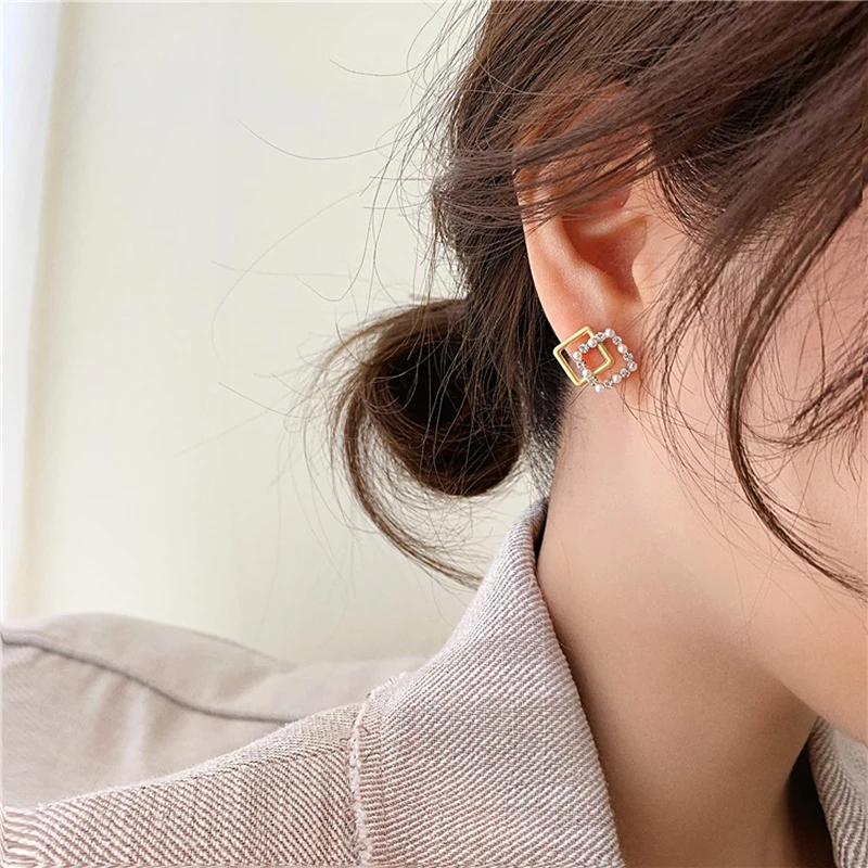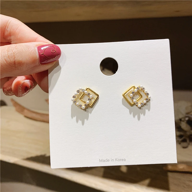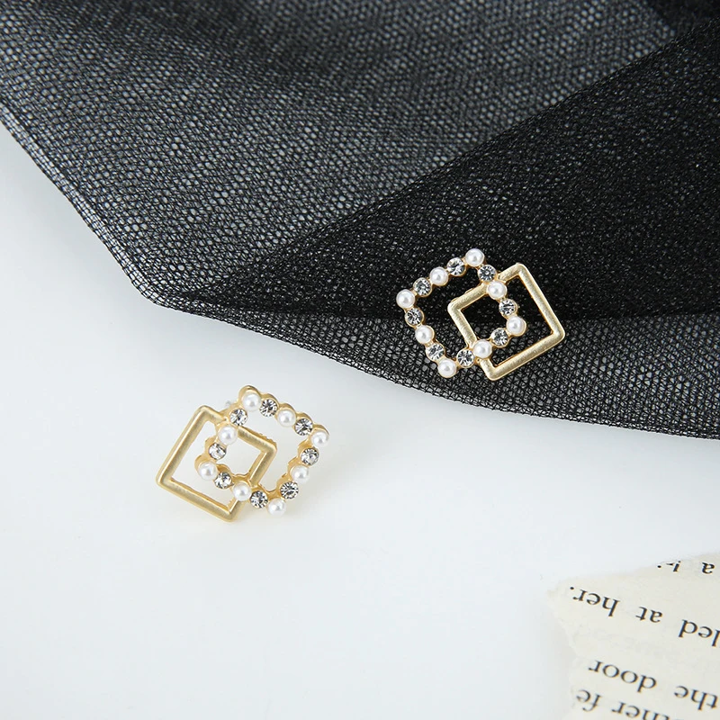Женские серьги с двойным квадратным жемчугом, серьги-гвоздики для женщин, ювелирные изделия, модные женские ювелирные изделия, корейские серьги с вишенкой